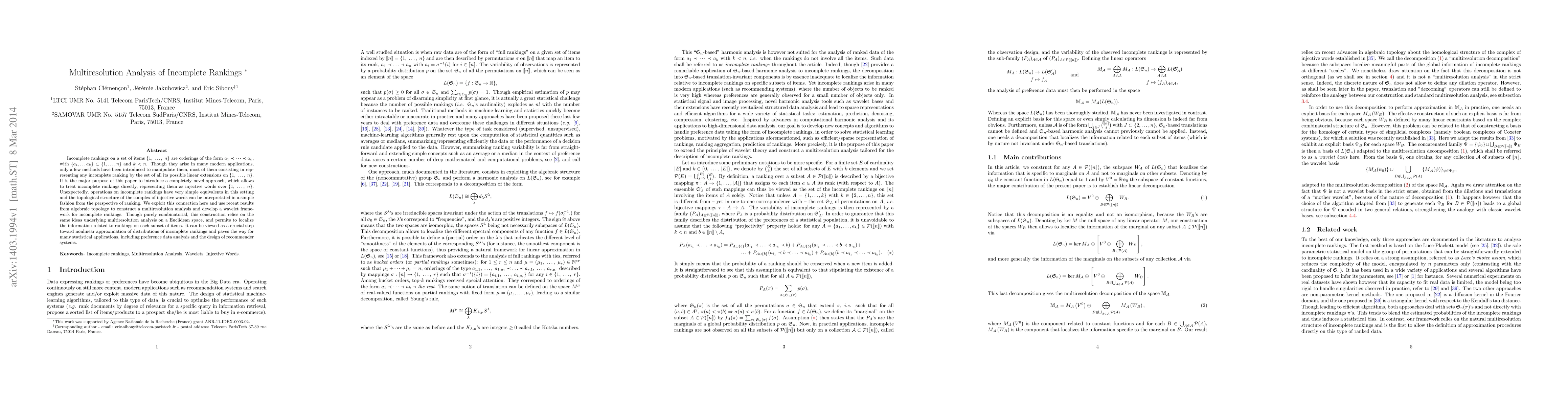 This paper introduces a novel approach to analyze incomplete rankings using injective words and algebraic topology, developing a multiresolution wavelet framework. This method localizes information on subsets of items, enabling nonlinear approximation and applications in preference data analysis and recommender systems.