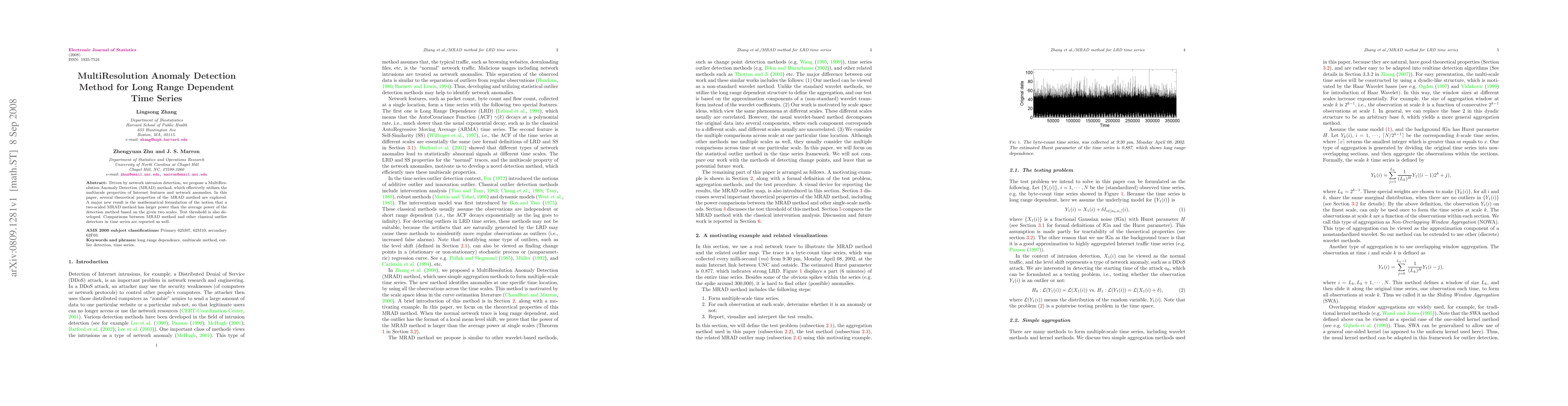 The paper proposes a MultiResolution Anomaly Detection (MRAD) method for long-range dependent time series, utilizing multiscale properties of Internet features and network anomalies. It explores theoretical properties of the MRAD method, including a major result on the power of a two-scaled MRAD method compared to the average power of a single-scale detection method.