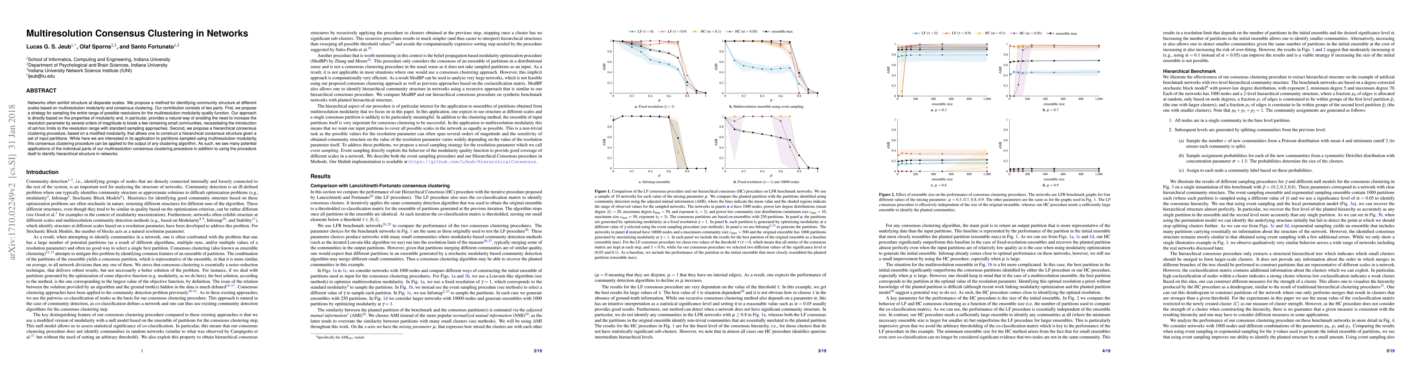 This paper introduces a multiresolution consensus clustering method for identifying community structures at various scales in networks. It proposes a strategy for sampling resolutions based on modularity and a hierarchical consensus clustering procedure to construct a consensus structure from input partitions, applicable to any clustering algorithm.