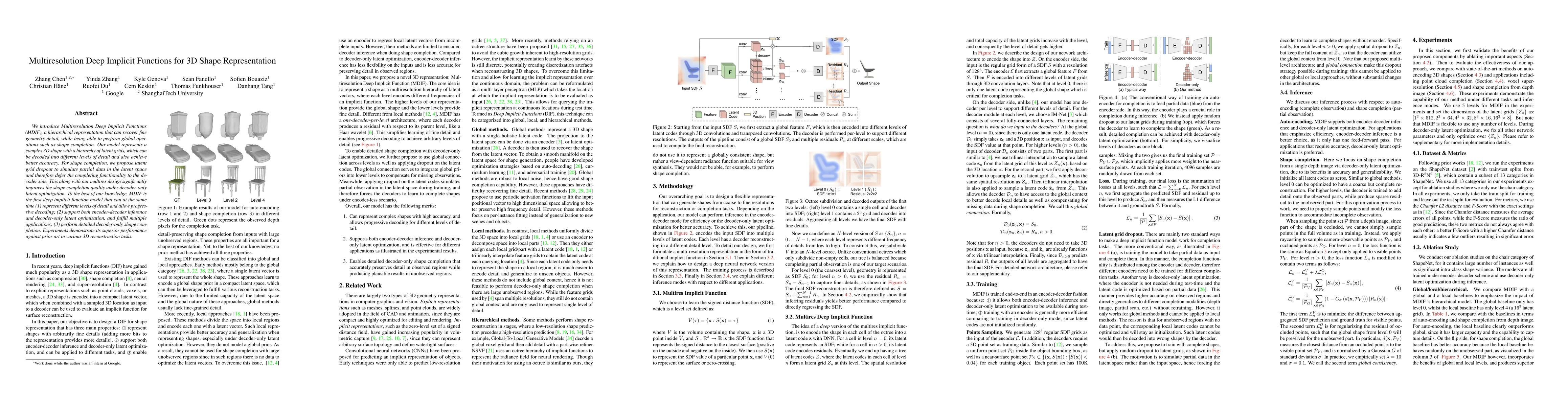 The paper introduces Multiresolution Deep Implicit Functions (MDIF), a hierarchical model that represents 3D shapes with latent grids for progressive decoding and detailed shape completion, achieving superior performance in 3D reconstruction tasks compared to prior methods.