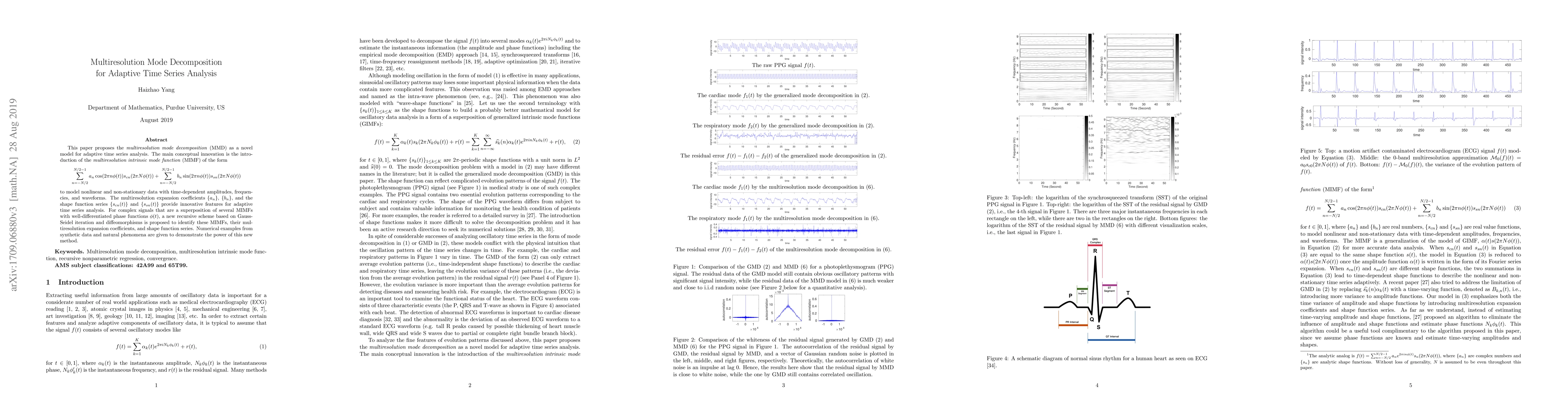 This paper introduces the multiresolution mode decomposition (MIMF) for adaptive time series analysis, proposing a novel model to handle nonlinear and non-stationary data through recursive identification of MIMFs using Gauss-Seidel iteration and diffeomorphisms, demonstrated via synthetic and natural data examples.
