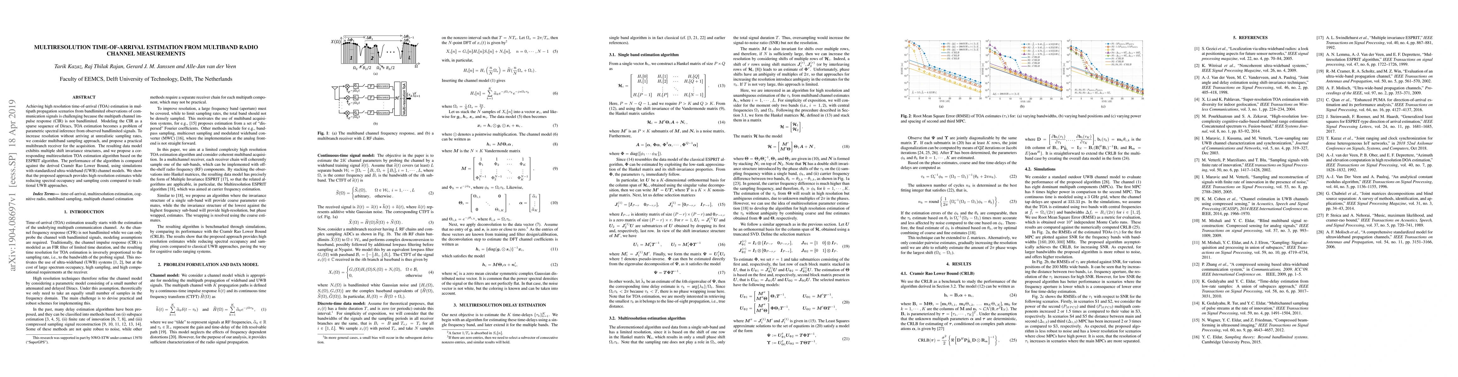 Achieving high resolution time-of-arrival (TOA) estimation in multipath propagation scenarios from bandlimited observations of communication signals is challenging because the multipath channel impulse response (CIR) is not bandlimited. Modeling the CIR as a sparse sequence of Diracs, TOA estimation becomes a problem of parametric spectral inference from observed bandlimited signals. To increase resolution without arriving at unrealistic sampling rates, we consider multiband sampling approach, and propose a practical multibranch receiver for the acquisition. The resulting data model exhibits multiple shift invariance structures, and we propose a corresponding multiresolution TOA estimation algorithm based on the ESPRIT algorithm. The performance of the algorithm is compared against the derived Cram\'er Rao Lower Bound, using simulations with standardized ultra-wideband (UWB) channel models. We show that the proposed approach provides high-resolution estimates while reducing spectral occupancy and sampling costs compared to traditional UWB approaches.