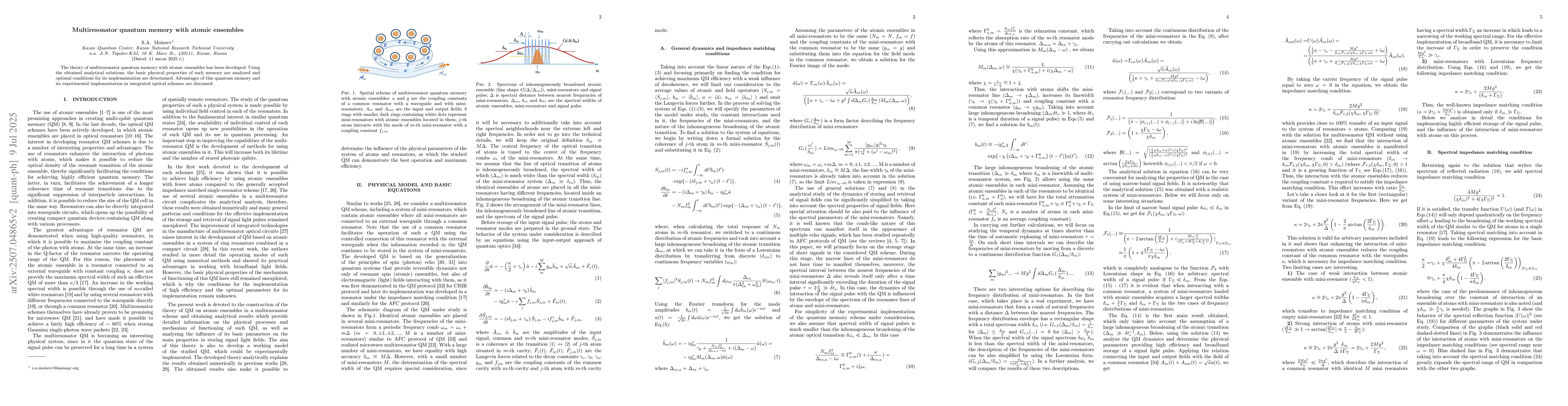 The theory of multiresonator quantum memory with atomic ensembles has been developed. Using the obtained analytical solutions, the basic physical properties of such memory are analyzed and optimal conditions for its implementation are determined. Advantages of this quantum memory and its experimental implementation in integrated optical schemes are discussed.