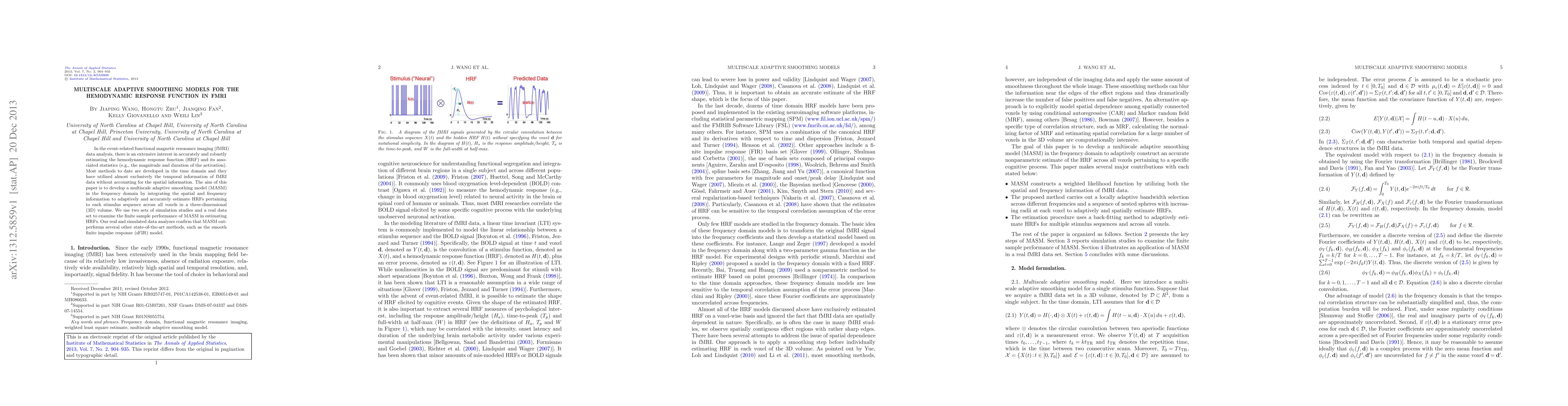 The paper develops a Multiscale Adaptive Smoothing Model (MASM) for estimating Hemodynamic Response Functions (HRFs) in fMRI data by integrating spatial and frequency information across voxels in a 3D volume.