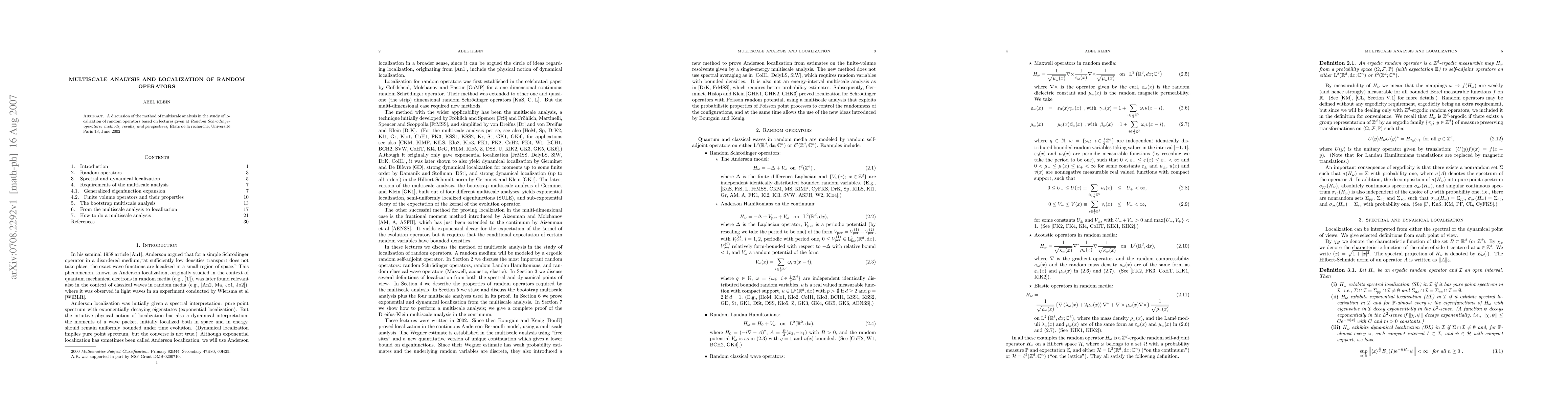 This research paper explores the method of multiscale analysis for studying random operators, focusing on localization methods. It discusses key findings and implications in a clear and accessible manner for non-experts.