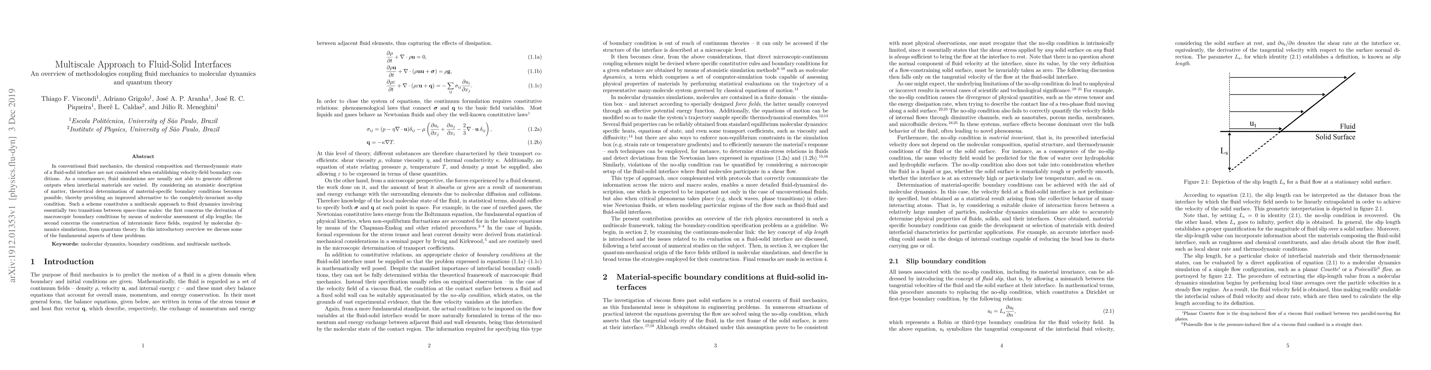 This paper introduces a multiscale approach to fluid-solid interfaces, combining fluid mechanics with molecular dynamics and quantum theory to derive material-specific boundary conditions, improving upon the traditional no-slip condition. It outlines the transitions from molecular to macroscopic scales and the integration of quantum theory for interatomic force fields.