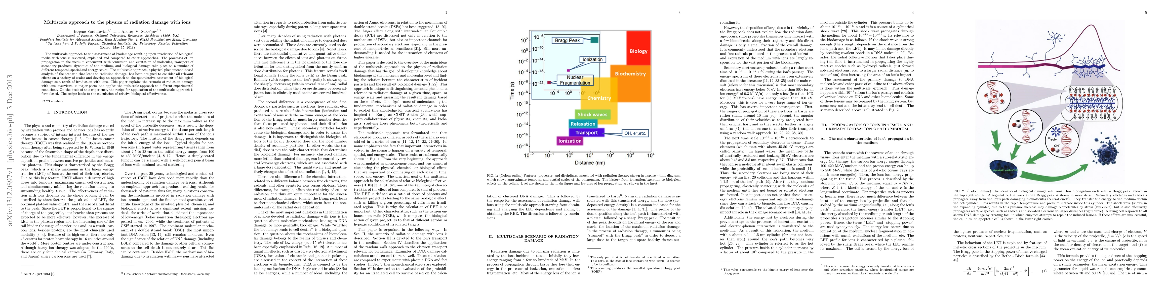 This paper reviews a multiscale approach to understanding radiation damage from ion irradiation in biological media, detailing processes across various temporal, spatial, and energy scales. It proposes a method for quantitatively assessing biological damage and formulates a recipe for its application to calculate relative biological effectiveness.
