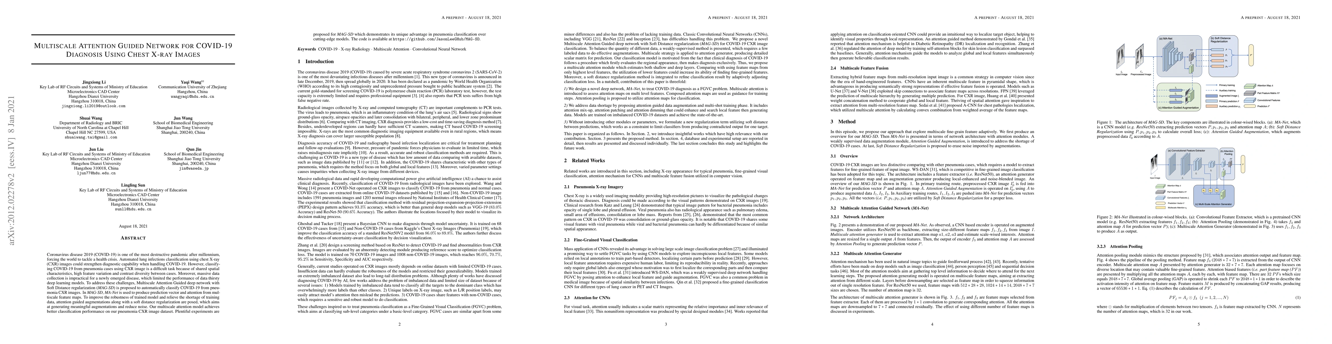 The paper proposes a Multiscale Attention Guided Network (MAG-SD) for COVID-19 diagnosis using chest X-ray images, addressing challenges like shared spatial characteristics and limited data. The model uses multiscale attention to enhance feature extraction and employs soft distance regularization and attention-guided augmentations to improve robustness and performance.