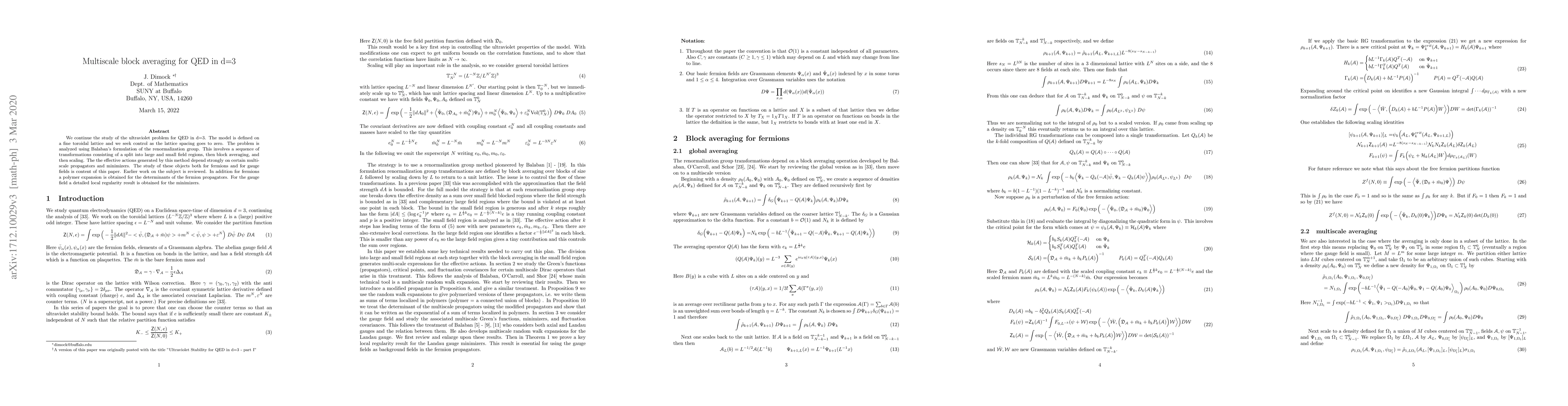 We continue the study of the ultraviolet problem for QED in d=3. The model is defined on a fine toroidal lattice and we seek control as the lattice spacing goes to zero. The problem is analyzed using Balaban's formulation of the renormalization group. This involves a sequence of transformations consisting of a split into large and small field regions, then block averaging, and then scaling. The the effective actions generated by this method depend strongly on certain multi-scale propagators and minimizers. The study of these objects both for fermions and for gauge fields is content of this paper. Earlier work on the subject is reviewed. In addition for fermions a polymer expansion is obtained for the determinants of the fermion propagators. For the gauge field a detailed local regularity result is obtained for the minimizers.