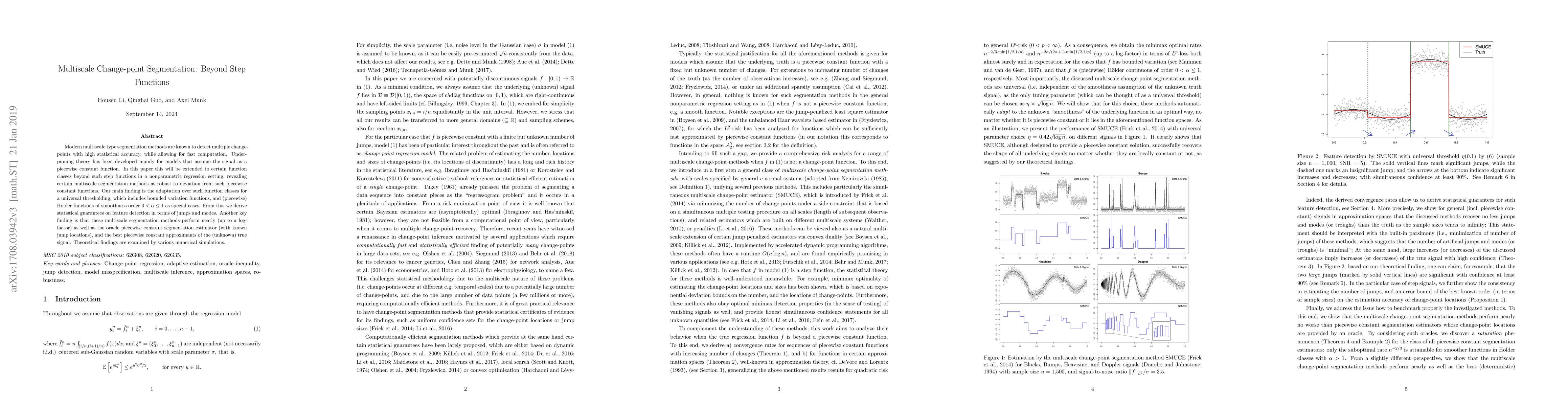 Modern multiscale type segmentation methods are known to detect multiple change-points with high statistical accuracy, while allowing for fast computation. Underpinning theory has been developed mainly for models that assume the signal as a piecewise constant function. In this paper this will be extended to certain function classes beyond such step functions in a nonparametric regression setting, revealing certain multiscale segmentation methods as robust to deviation from such piecewise constant functions. Our main finding is the adaptation over such function classes for a universal thresholding, which includes bounded variation functions, and (piecewise) H\"{o}lder functions of smoothness order $ 0 < \alpha \le1$ as special cases. From this we derive statistical guarantees on feature detection in terms of jumps and modes. Another key finding is that these multiscale segmentation methods perform nearly (up to a log-factor) as well as the oracle piecewise constant segmentation estimator (with known jump locations), and the best piecewise constant approximants of the (unknown) true signal. Theoretical findings are examined by various numerical simulations.