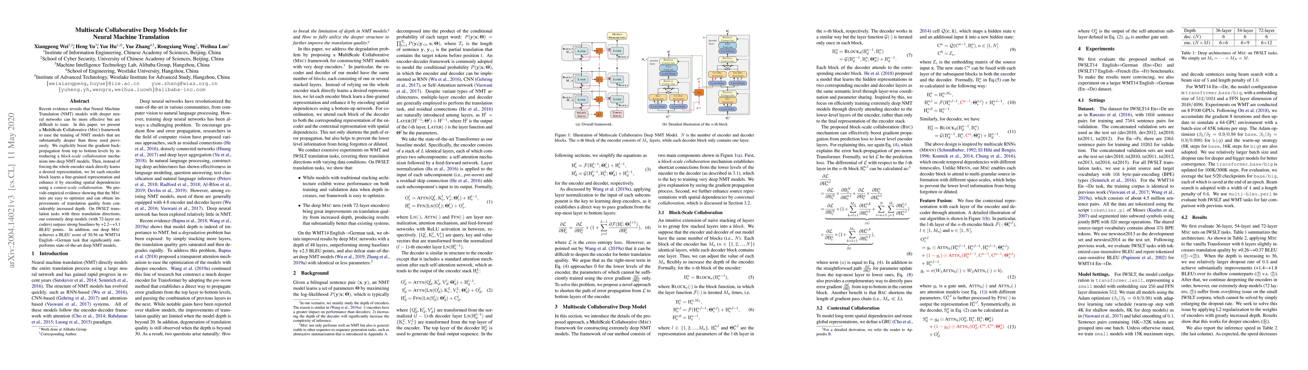 This paper introduces a MultiScale Collaborative (MSC) framework to facilitate the training of deeper Neural Machine Translation (NMT) models, achieving significant improvements in translation quality. The MSC framework enhances gradient back-propagation and allows each encoder block to learn fine-grained representations, leading to substantial BLEU score gains on multiple translation tasks.