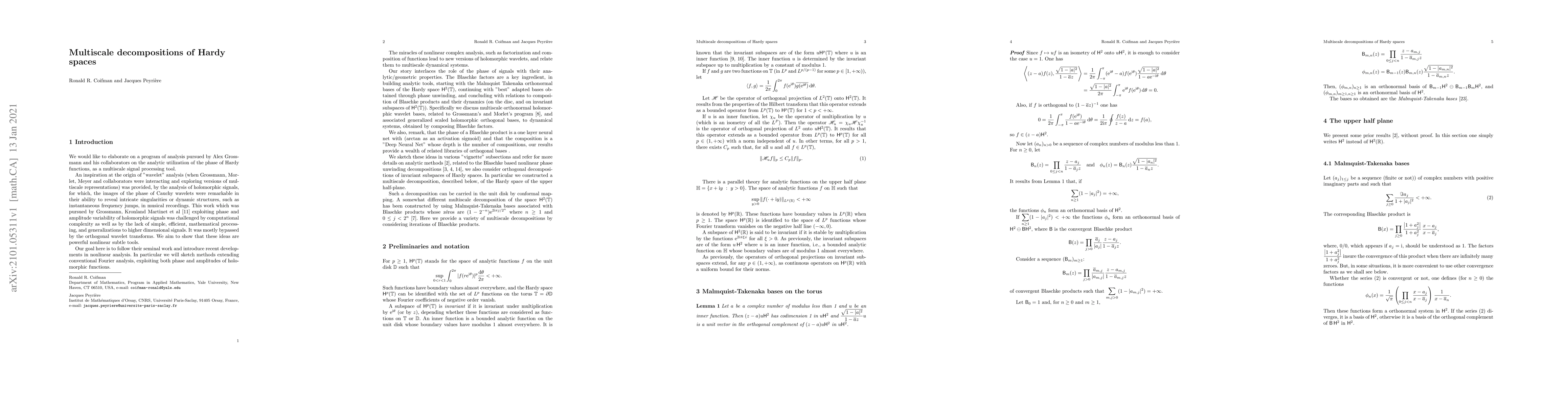 An inspiration at the origin of wavelet analysis (when Grossmann, Morlet, Meyer and collaborators were interacting and exploring versions of multiscale representations) was provided by the analysis of holomorphic signals, for which the images of the phase of Cauchy wavelets were remarkable in their ability to reveal intricate singularities or dynamic structures, such as instantaneous frequency jumps in musical recordings. Our goal is to follow their seminal work and introduce recent developments in nonlinear analysis. In particular we sketch methods extending conventional Fourier analysis, exploiting both phase and amplitudes of holomorphic functions. The Blaschke factors are a key ingredient, in building analytic tools, starting with the Malmquist Takenaka orthonormal bases of the Hardy space, continuing with "best" adapted bases obtained through phase unwinding, and concluding with relations to composition of Blaschke products and their dynamics. We also remark that the phase of a Blaschke product is a one layer neural net with arctan as an activation sigmoid and that the composition is a "Deep Neural Net" whose depth is the number of compositions. Our results provide a wealth of related library of orthonormal bases.