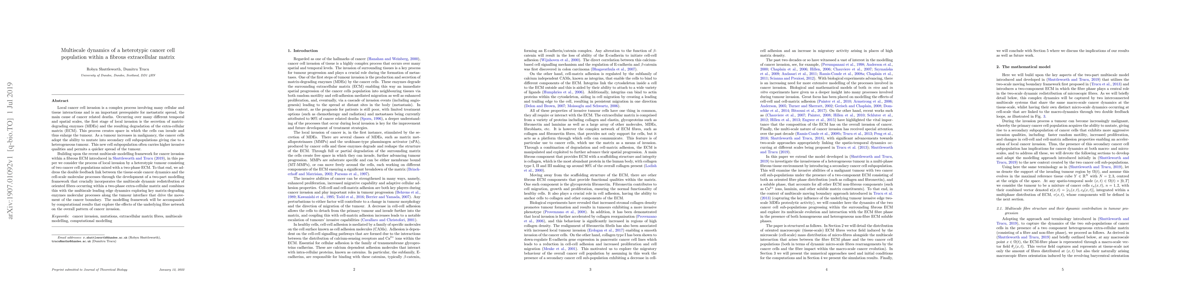 Local cancer cell invasion is a complex process involving many cellular and tissue interactions and is an important prerequisite for metastatic spread, the main cause of cancer related deaths. Occurring over many different temporal and spatial scales, the first stage of local invasion is the secretion of matrix-degrading enzymes (MDEs) and the resulting degradation of the extra-cellular matrix (ECM). This process creates space in which the cells can invade and thus enlarge the tumour. As a tumour increases in malignancy, the cancer cells adopt the ability to mutate into secondary cell subpopulations giving rise to a heterogeneous tumour. This new cell subpopulation often carries higher invasive qualities and permits a quicker spread of the tumour. Building upon the recent multiscale modelling framework for cancer invasion within a fibrous ECM introduced in Shuttleworth and Trucu (2019), in this paper we consider the process of local invasion by a heterotypic tumour consisting of two cancer cell populations mixed with a two-phase ECM. To that end, we address the double feedback link between the tissue-scale cancer dynamics and the cell-scale molecular processes through the development of a two-part modelling framework that crucially incorporates the multiscale dynamic redistribution of oriented fibres occurring within a two-phase extra-cellular matrix and combines this with the multiscale leading edge dynamics exploring key matrix-degrading enzymes molecular processes along the tumour interface that drive the movement of the cancer boundary. The modelling framework will be accompanied by computational results that explore the effects of the underlying fibre network on the overall pattern of cancer invasion.