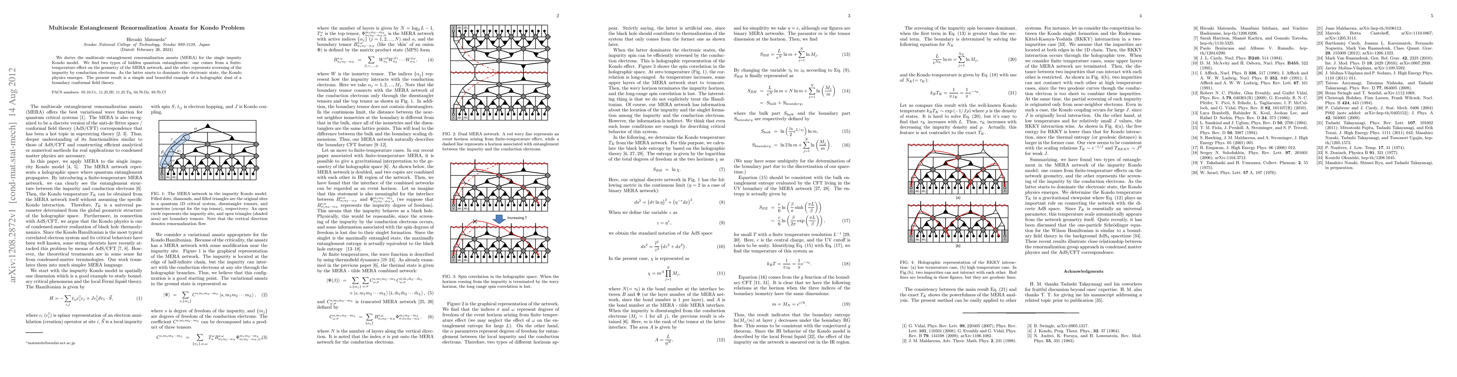The paper derives the MERA for the Kondo model, revealing two types of quantum entanglement: one from finite-temperature effects and the other from impurity screening, leading to emergent Kondo physics and a holographic dual of boundary conformal field theory.
