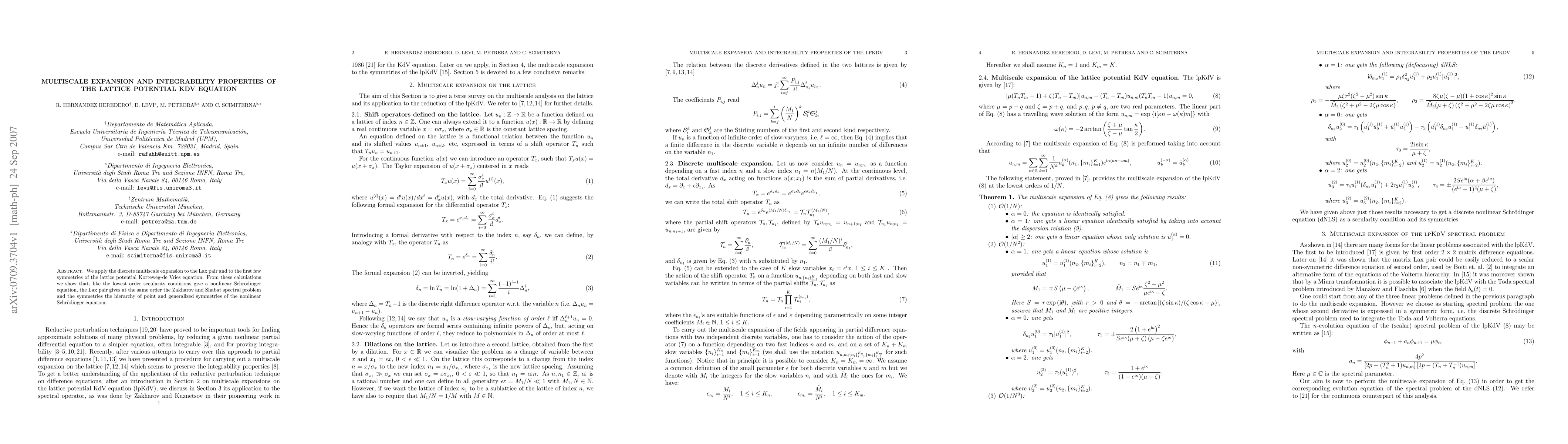 We apply the discrete multiscale expansion to the Lax pair and to the first few symmetries of the lattice potential Korteweg-de Vries equation. From these calculations we show that, like the lowest order secularity conditions give a nonlinear Schroedinger equation, the Lax pair gives at the same order the Zakharov and Shabat spectral problem and the symmetries the hierarchy of point and generalized symmetries of the nonlinear Schroedinger equation.