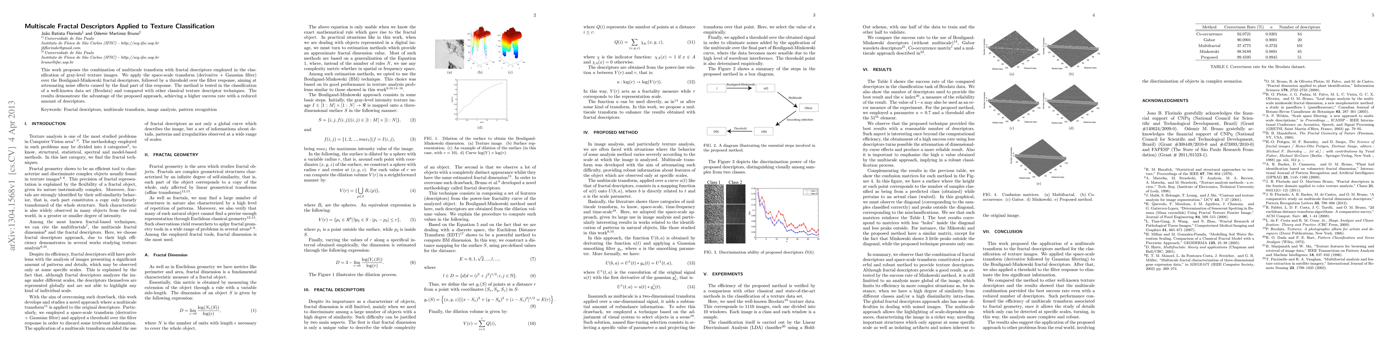 This paper combines multiscale transforms with fractal descriptors for texture classification, showing improved results on the Brodatz dataset compared to classical methods. The proposed method achieves higher success rates with fewer descriptors.