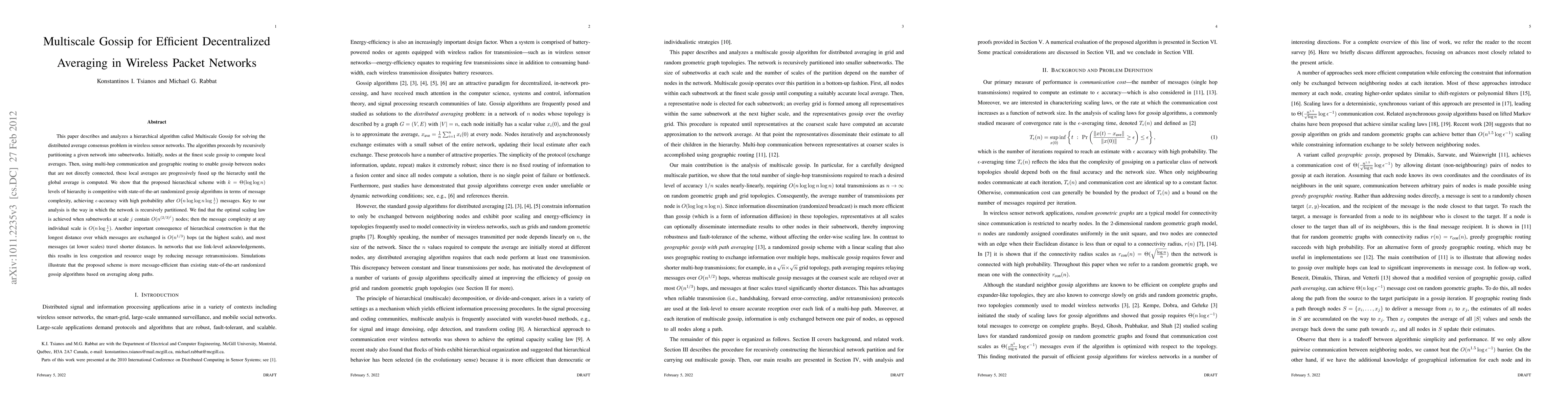 This paper proposes a hierarchical gossip algorithm for decentralized averaging in wireless sensor networks, achieving competitive message complexity and $\epsilon$-accuracy. The network is recursively partitioned into subnetworks, with optimal scaling achieved when subnetworks contain $O(n^{(2/3)^j})$ nodes, leading to reduced congestion and resource usage.