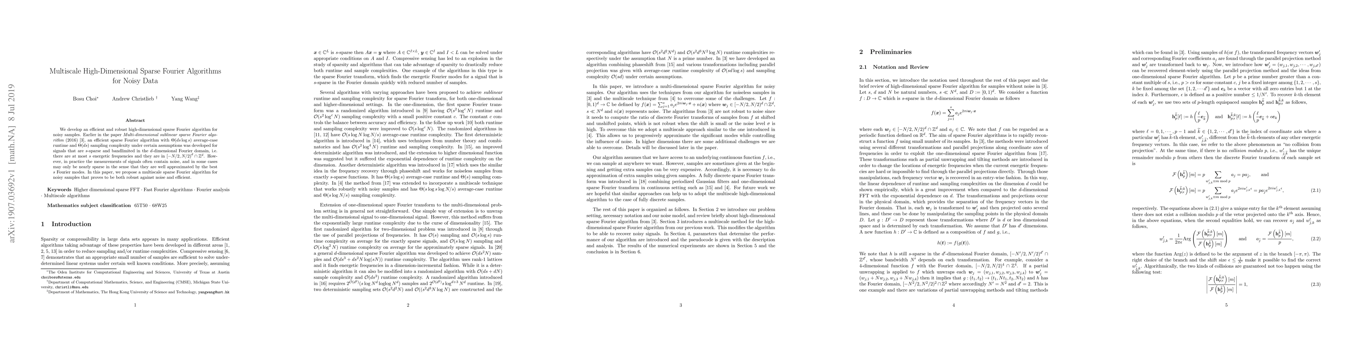 This paper introduces a multiscale high-dimensional sparse Fourier algorithm designed to efficiently handle noisy data, improving upon previous methods by demonstrating robustness against noise while maintaining computational efficiency. The proposed algorithm is particularly effective for signals that are nearly sparse and bandlimited in the Fourier domain.