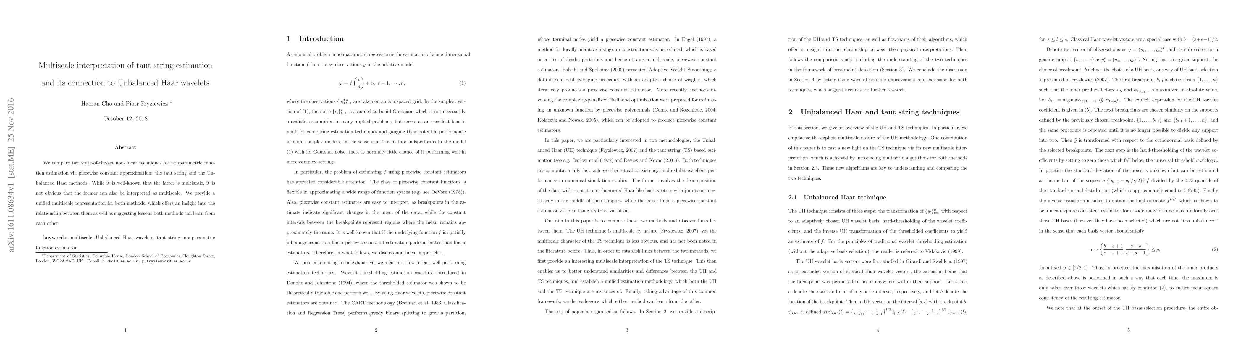 We compare two state-of-the-art non-linear techniques for nonparametric function estimation via piecewise constant approximation: the taut string and the Unbalanced Haar methods. While it is well-known that the latter is multiscale, it is not obvious that the former can also be interpreted as multiscale. We provide a unified multiscale representation for both methods, which offers an insight into the relationship between them as well as suggesting lessons both methods can learn from each other.