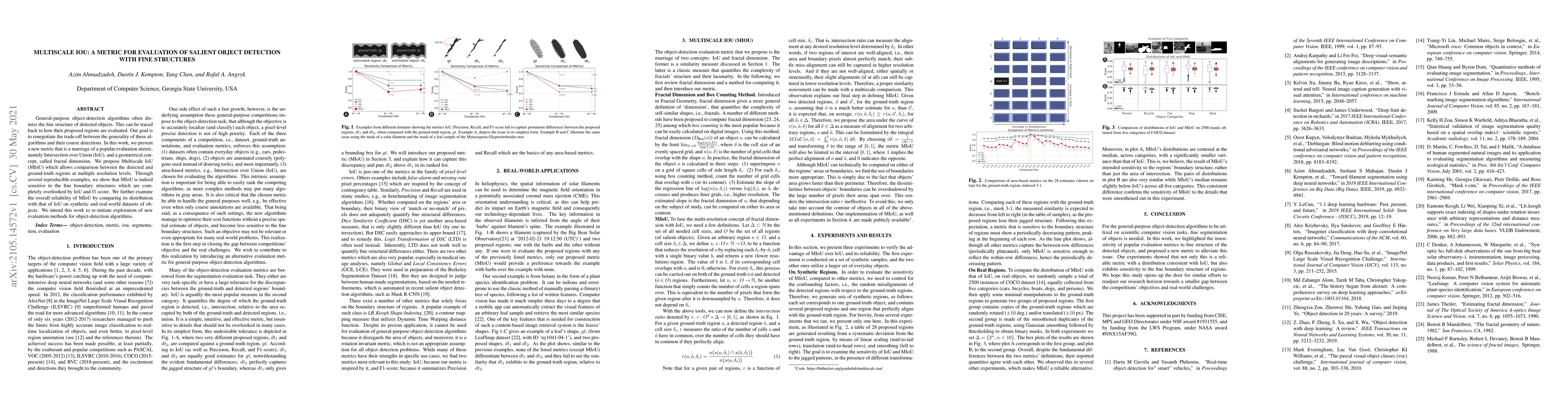 This paper introduces Multiscale IoU (MIoU), a novel metric combining Intersection over Union (IoU) and fractal dimension to evaluate salient object detection with fine structures, addressing the limitations of traditional methods in detecting fine boundaries. MIoU's sensitivity to fine details is demonstrated through comparisons and analyses on synthetic and real datasets.