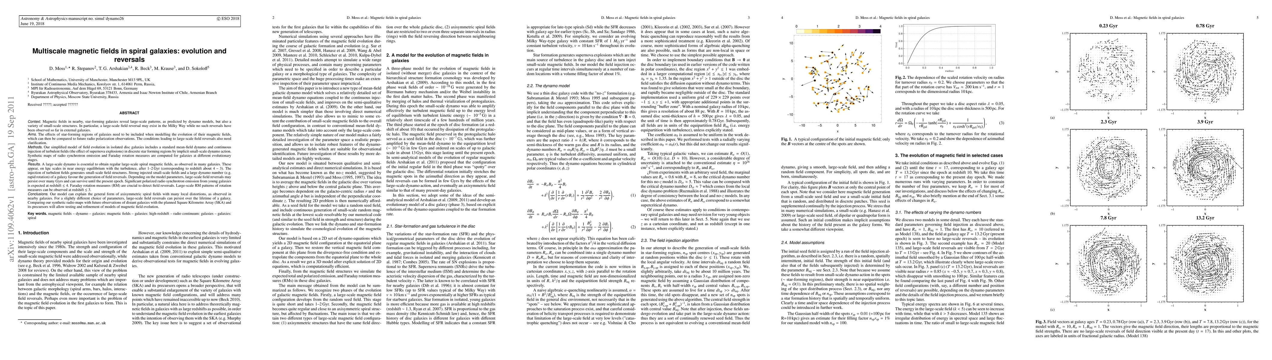 This paper explores the evolution and potential reversals of large-scale magnetic fields in spiral galaxies, emphasizing the role of star-forming regions and turbulent field injection from supernovae. The model predicts that large-scale field reversals may persist for billions of years and can be detected through Faraday rotation measures, with future observations by the SKA aiding in refining these models.