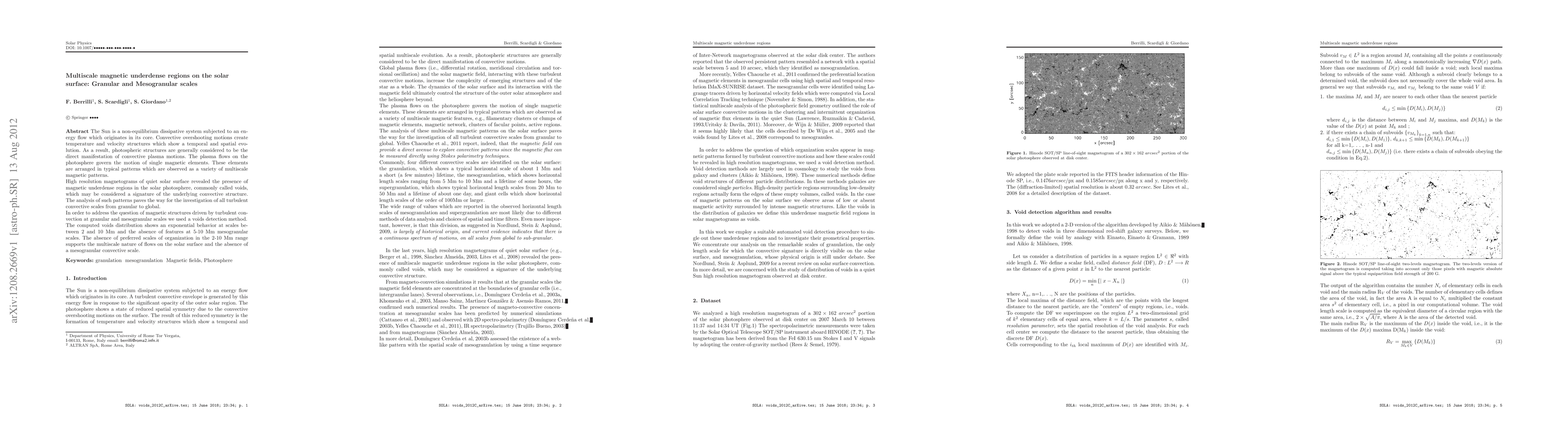 This paper investigates magnetic underdense regions (voids) in the solar photosphere, revealing their exponential distribution at granular scales (2-10 Mm) and the absence of features at mesogranular scales (5-10 Mm), supporting the multiscale nature of solar surface flows and the lack of a distinct mesogranular convective scale.