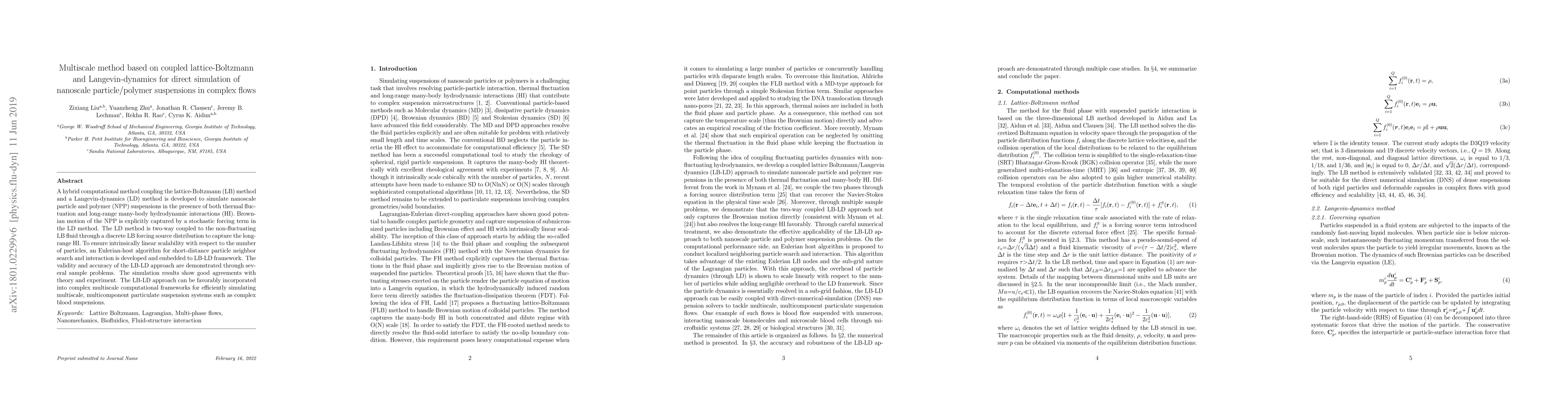 This paper develops a hybrid computational method combining lattice-Boltzmann and Langevin-dynamics to simulate nanoscale particle and polymer suspensions, capturing thermal fluctuations and hydrodynamic interactions. The method shows good agreement with theory and experiments, promising for multiscale simulations of complex particulate systems.