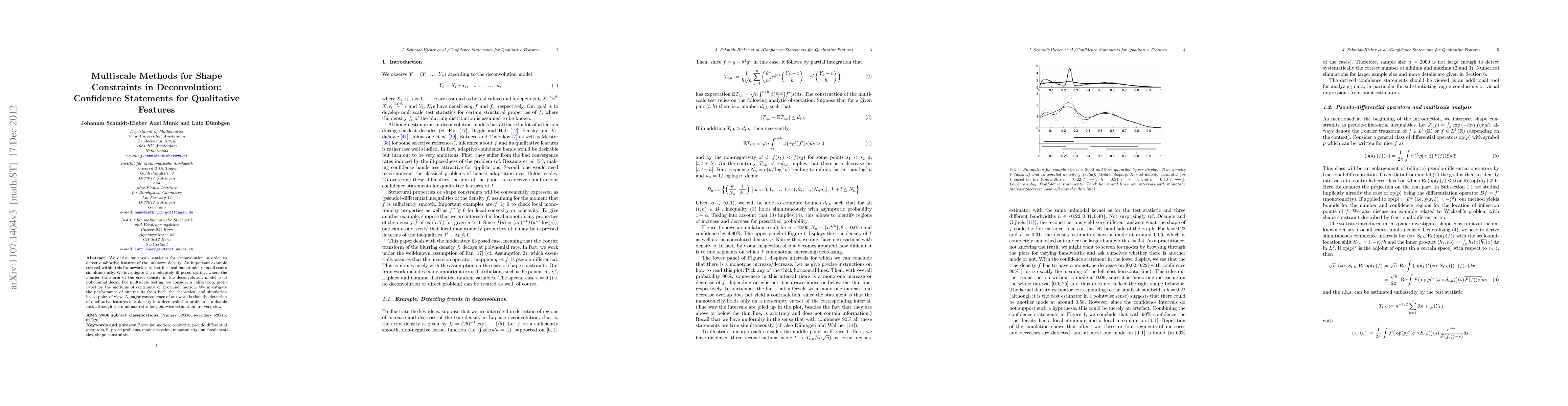 This research introduces multiscale statistics for deconvolution to identify qualitative features of unknown densities, such as local monotonicity across all scales. Despite slow minimax rates for pointwise estimation, the study shows that detecting such qualitative features is feasible in the moderately ill-posed setting, supported by theoretical and simulation-based evidence.