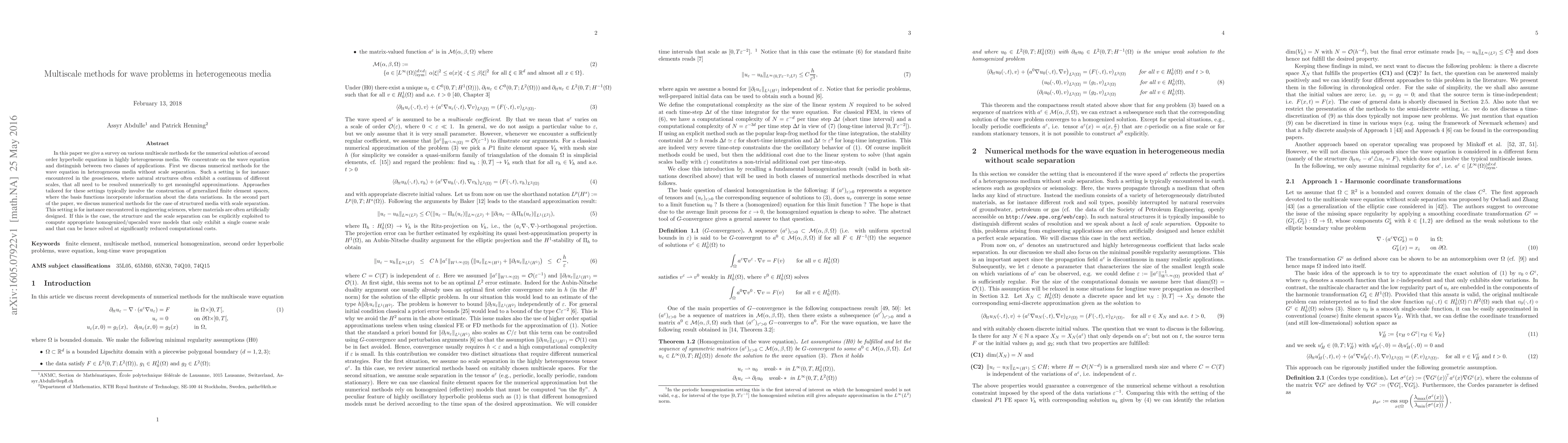 This research is significant as it offers a detailed overview of multiscale methods applicable to wave problems in heterogeneous media, which are prevalent in various scientific and engineering fields. The methods presented can lead to more efficient numerical simulations, reducing computational costs and improving accuracy.