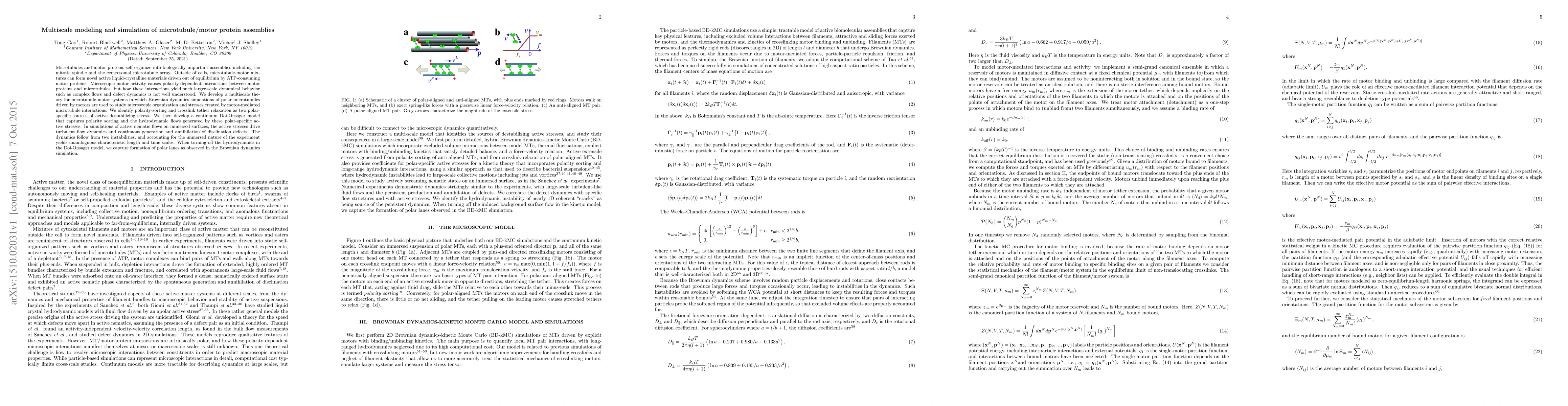 This paper develops a multiscale theory to understand the dynamics of microtubule-motor protein assemblies, revealing the emergence of complex flows and defect dynamics from microscopic interactions. The study combines Brownian dynamics simulations and a continuum Doi-Onsager model to identify active stresses and turbulent flow dynamics driven by motor-mediated microtubule interactions.