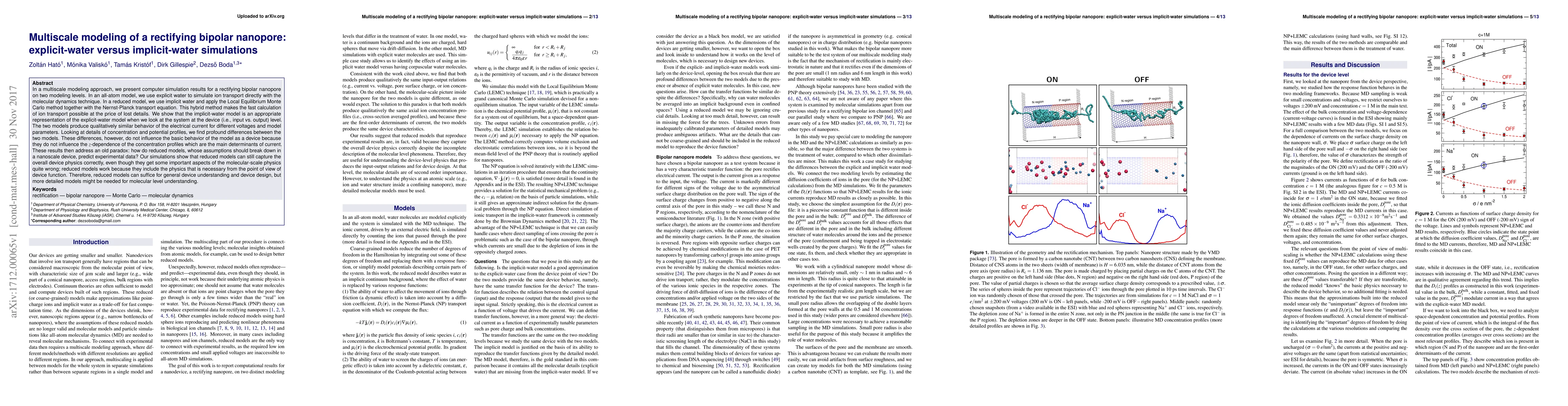 This paper compares explicit-water and implicit-water simulations in multiscale modeling of a rectifying bipolar nanopore, showing that while implicit-water models miss molecular details, they accurately predict device-level electrical current behavior, thus resolving the paradox of reduced models' effectiveness in nanoscale device physics.
