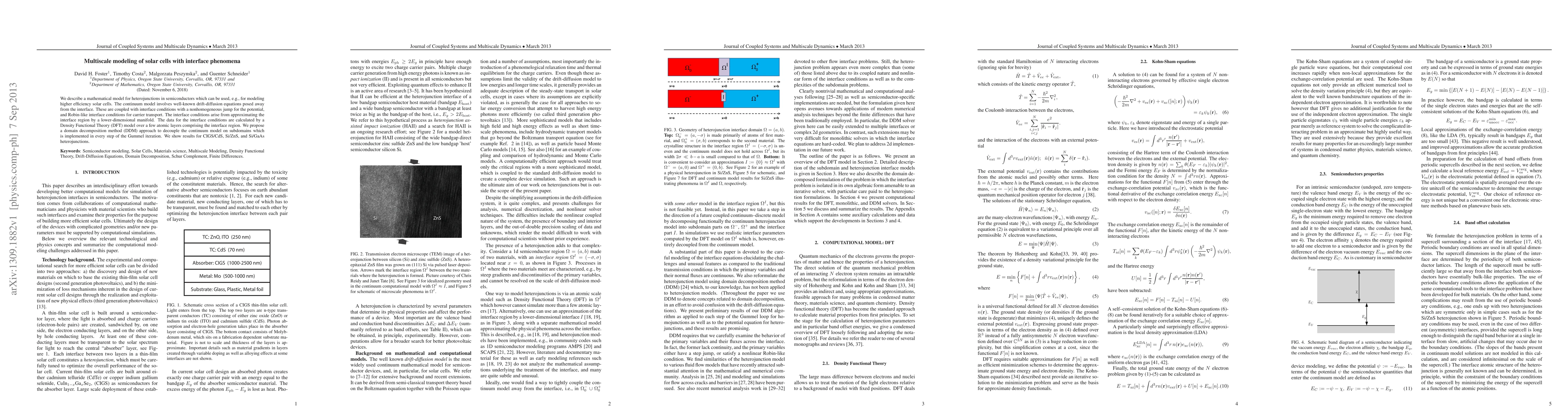 Researchers developed a mathematical model to improve the efficiency of solar cells by simulating interface phenomena between different semiconductor materials. The model, which combines continuum and density functional theory approaches, can be used to design higher-efficiency solar cells.
