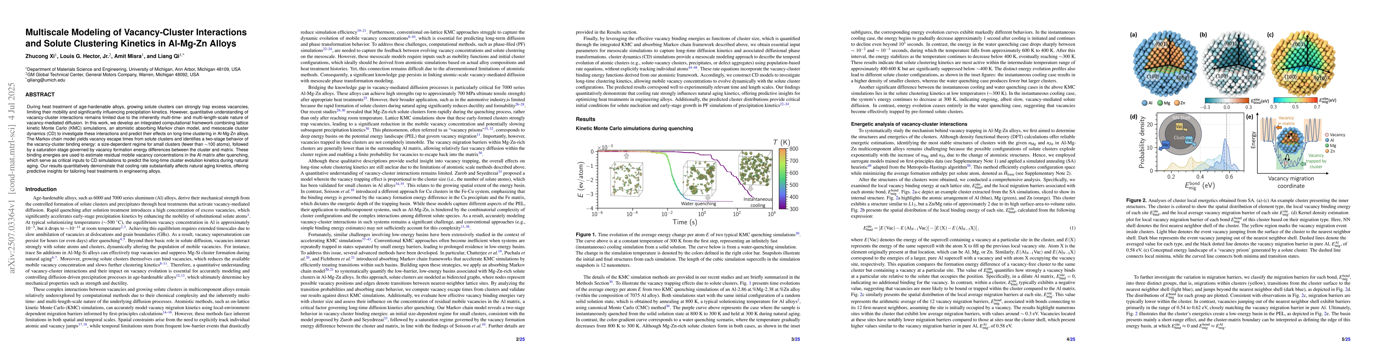 During heat treatment of age-hardenable alloys, growing solute clusters can strongly trap excess vacancies, limiting their mobility and significantly influencing precipitation kinetics. However, quantitative understanding of vacancy-cluster interactions remains limited due to the inherently multi-time- and multi-length-scale nature of vacancy-mediated diffusion. In this work, we develop an integrated computational framework combining lattice kinetic Monte Carlo (KMC) simulations, an atomistic absorbing Markov chain model, and mesoscale cluster dynamics (CD) to investigate these interactions and predict their effects on long-time clustering in Al-Mg-Zn alloys. The Markov chain model yields vacancy escape times from solute clusters and identifies a two-stage behavior of the vacancy-cluster binding energy: a size-dependent regime for small clusters (fewer than $\sim$100 atoms), followed by a saturation stage governed by vacancy formation energy differences between the cluster and matrix. These binding energies are used to estimate residual mobile vacancy concentrations in the Al matrix after quenching, which serve as critical inputs to CD simulations to predict the long-time cluster evolution kinetics during natural aging. Our results quantitatively demonstrate that cooling rate substantially affects natural aging kinetics, offering predictive insights for tailoring heat treatments in engineering alloys.