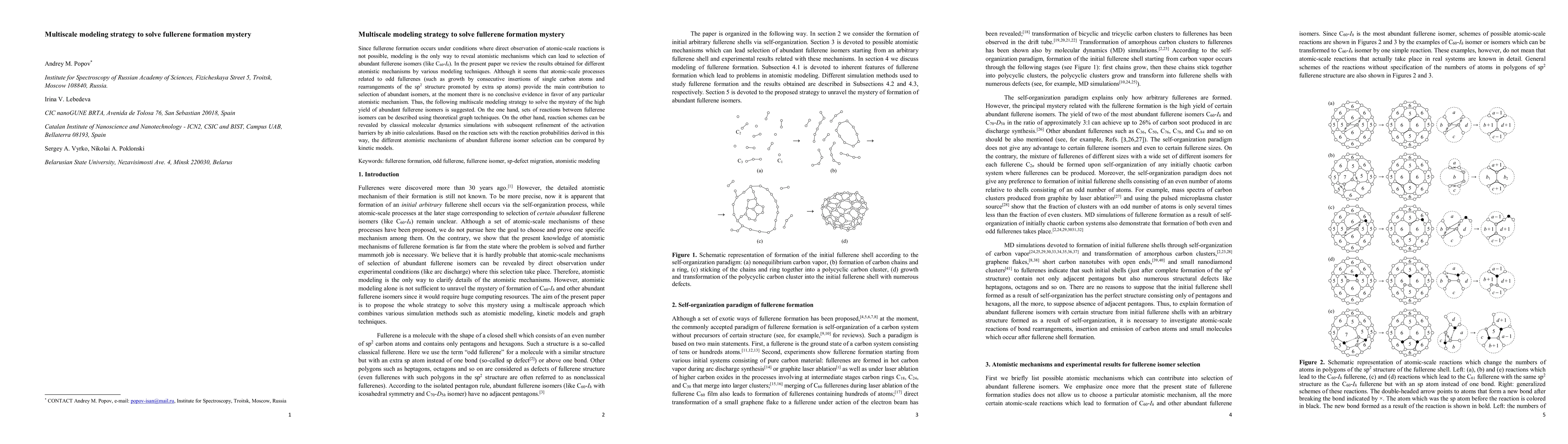 Since fullerene formation occurs under conditions where direct observation of atomic-scale reactions is not possible, modeling is the only way to reveal atomistic mechanisms which can lead to selection of abundant fullerene isomers (like C60-Ih). In the present paper we review the results obtained for different atomistic mechanisms by various modeling techniques. Although it seems that atomic-scale processes related to odd fullerenes (such as growth by consecutive insertions of single carbon atoms and rearrangements of the sp$^2$ structure promoted by extra sp atoms) provide the main contribution to selection of abundant isomers, at the moment there is no conclusive evidence in favor of any particular atomistic mechanism. Thus, the following multiscale modeling strategy to solve the mystery of the high yield of abundant fullerene isomers is suggested. On the one hand, sets of reactions between fullerene isomers can be described using theoretical graph techniques. On the other hand, reaction schemes can be revealed by classical molecular dynamics simulations with subsequent refinement of the activation barriers by ab initio calculations. Based on the reaction sets with the reaction probabilities derived in this way, the different atomistic mechanisms of abundant fullerene isomer selection can be compared by kinetic models.
