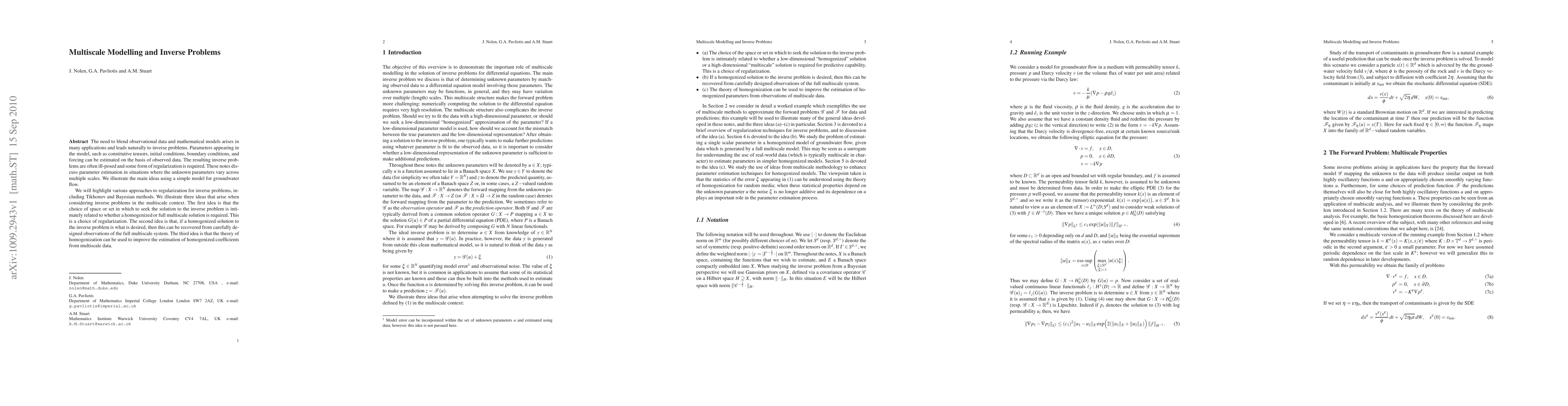 This paper explores parameter estimation in multiscale inverse problems, emphasizing the need for regularization due to the ill-posed nature of these problems. It discusses various regularization methods, including Tikhonov and Bayesian approaches, and highlights the importance of choosing the appropriate space for solution representation, the role of observations in obtaining homogenized solutions, and the use of homogenization theory to enhance coefficient estimation.