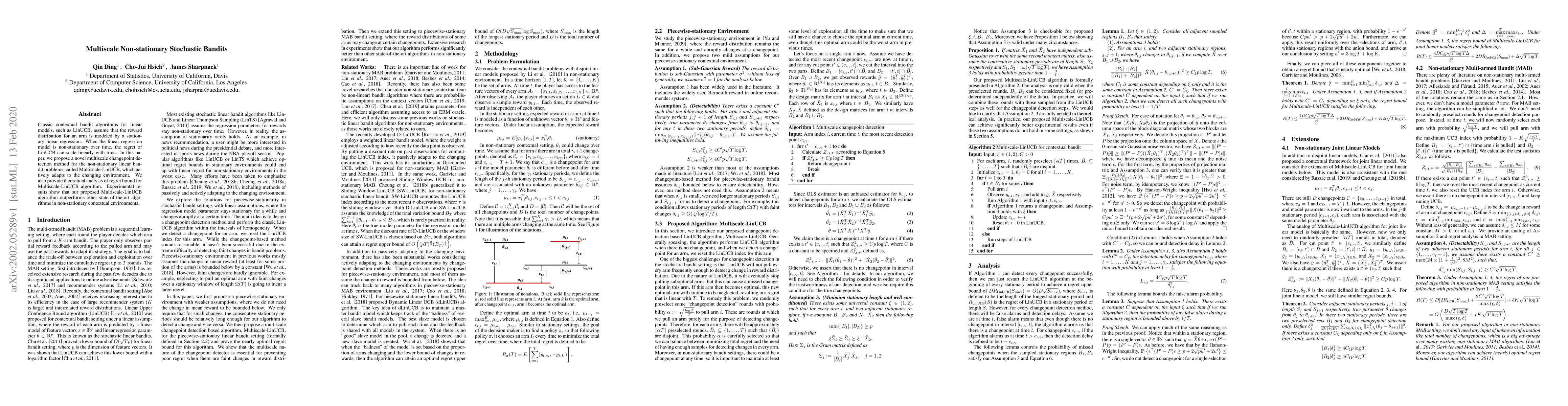 This paper introduces Multiscale-LinUCB, a novel algorithm for non-stationary linear bandit problems that employs multiscale changepoint detection to adapt to changing environments. Theoretical analysis and experiments demonstrate its superior performance over existing methods in non-stationary contexts.
