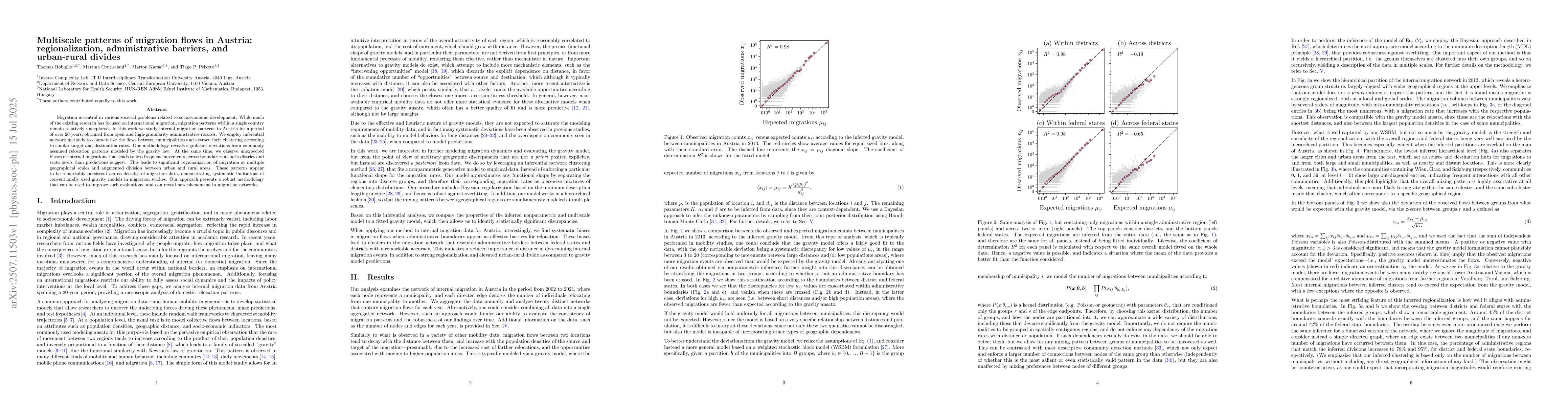 Migration is central in various societal problems related to socioeconomic development. While much of the existing research has focused on international migration, migration patterns within a single country remain relatively unexplored. In this work we study internal migration patterns in Austria for a period of over 20 years, obtained from open and high-granularity administrative records. We employ inferential network methods to characterize the flows between municipalities and extract their clustering according to similar target and destination rates. Our methodology reveals significant deviations from commonly assumed relocation patterns modeled by the gravity law. At the same time, we observe unexpected biases of internal migrations that leads to less frequent movements across boundaries at both district and state levels than predictions suggest. This leads to significant regionalization of migration at multiple geographical scales and augmented division between urban and rural areas. These patterns appear to be remarkably persistent across decades of migration data, demonstrating systematic limitations of conventionally used gravity models in migration studies. Our approach presents a robust methodology that can be used to improve such evaluations, and can reveal new phenomena in migration networks.