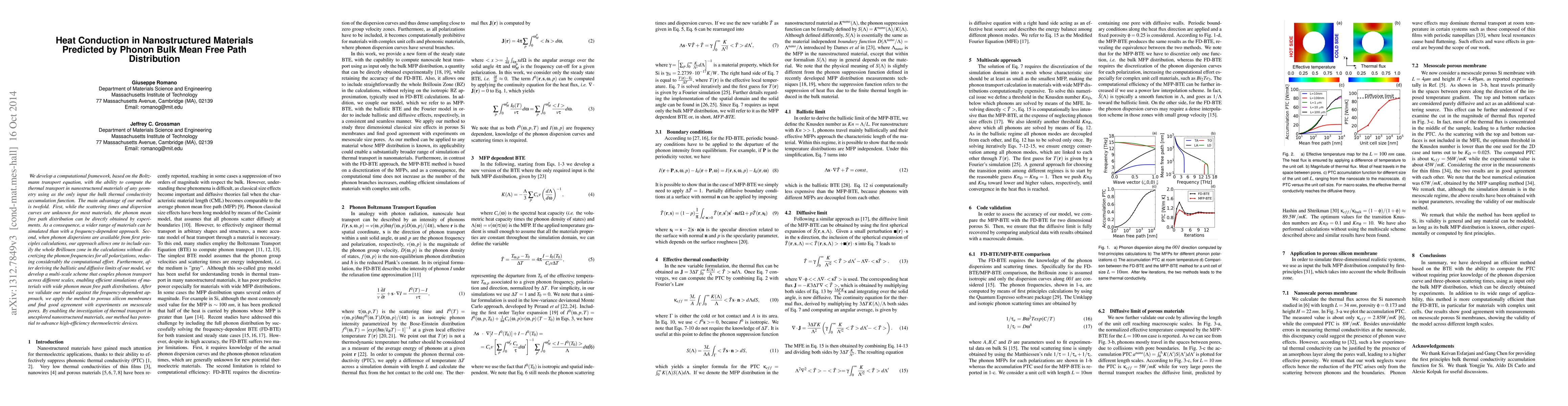 This paper introduces a computational framework based on the Boltzmann transport equation to simulate thermal transport in nanostructured materials using only the bulk thermal conductivity accumulation function. The method is advantageous for its wider applicability and reduced computational effort, validated through simulations of porous silicon membranes.