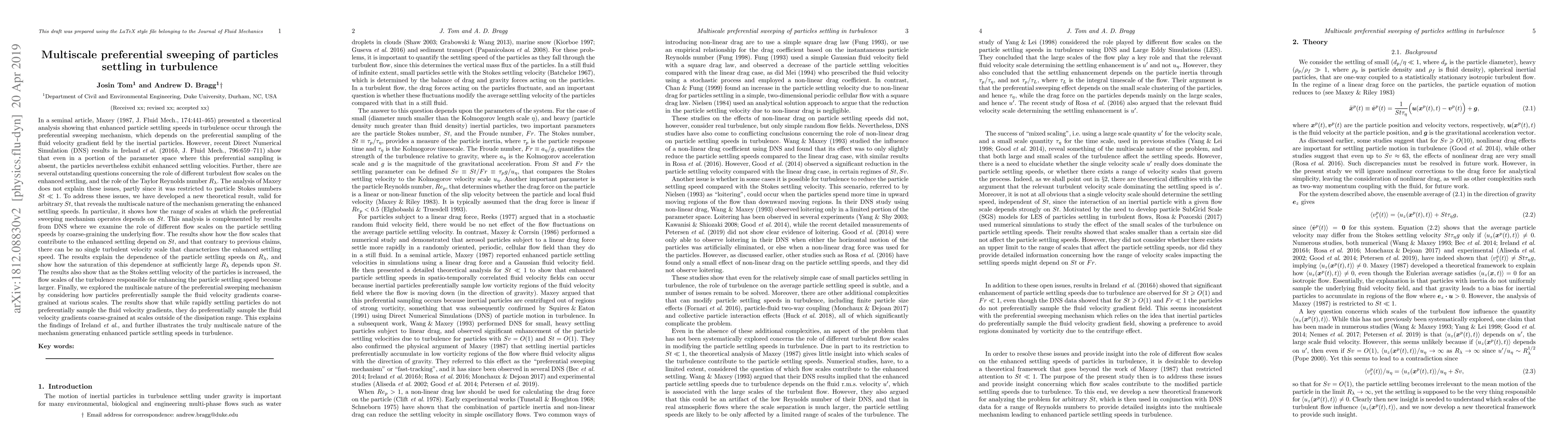 This paper develops a new theoretical framework for understanding multiscale preferential sweeping of particles in turbulent flows, showing that enhanced settling speeds depend on a range of turbulent flow scales and the particle Stokes number $St$. The analysis complements Direct Numerical Simulation results, revealing that the flow scales contributing to enhanced settling vary with $St$ and that no single turbulent velocity scale characterizes this phenomenon.