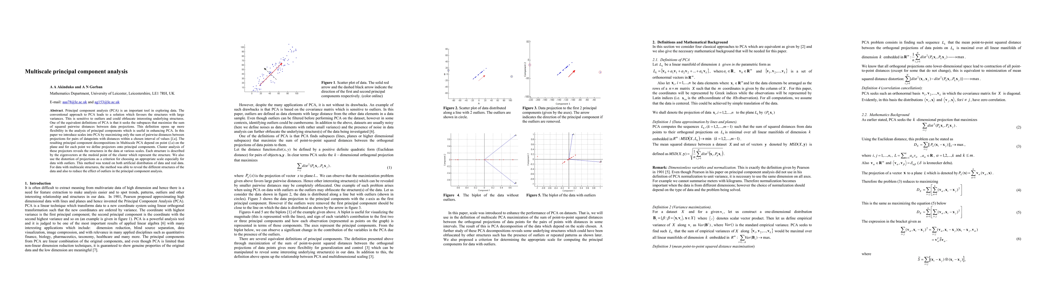 This paper introduces Multiscale PCA, enhancing traditional PCA by incorporating scales that maximize pairwise distances within chosen intervals. The method reveals data structures at various scales and reduces the impact of outliers, tested on both artificial and real datasets.