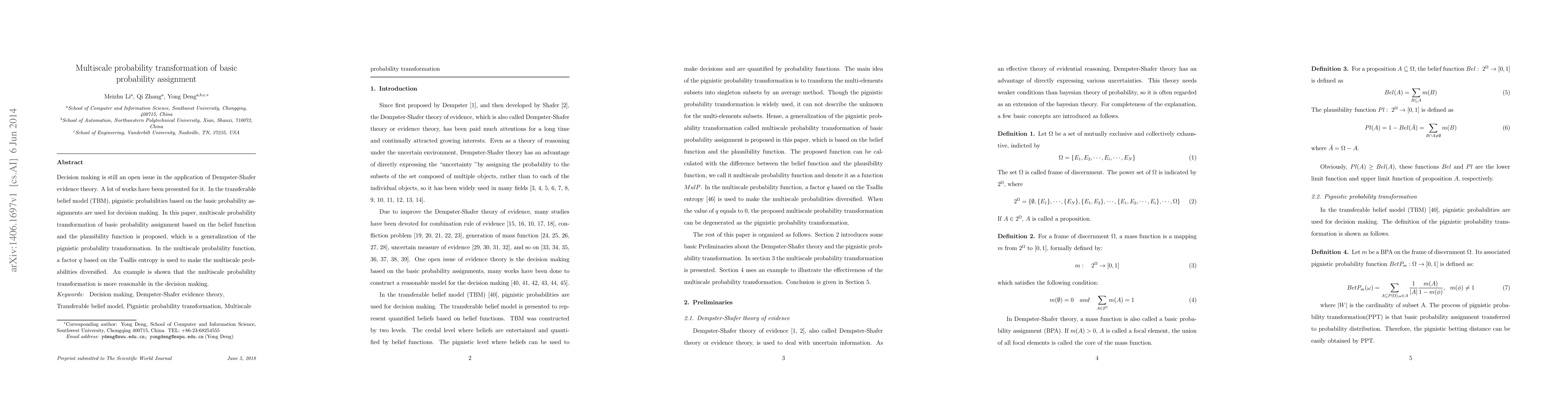 This paper proposes a multiscale probability transformation for basic probability assignments in the transferable belief model, generalizing the pignistic probability transformation. It introduces a factor q based on Tsallis entropy to diversify multiscale probabilities, demonstrating its effectiveness in decision-making through an example.