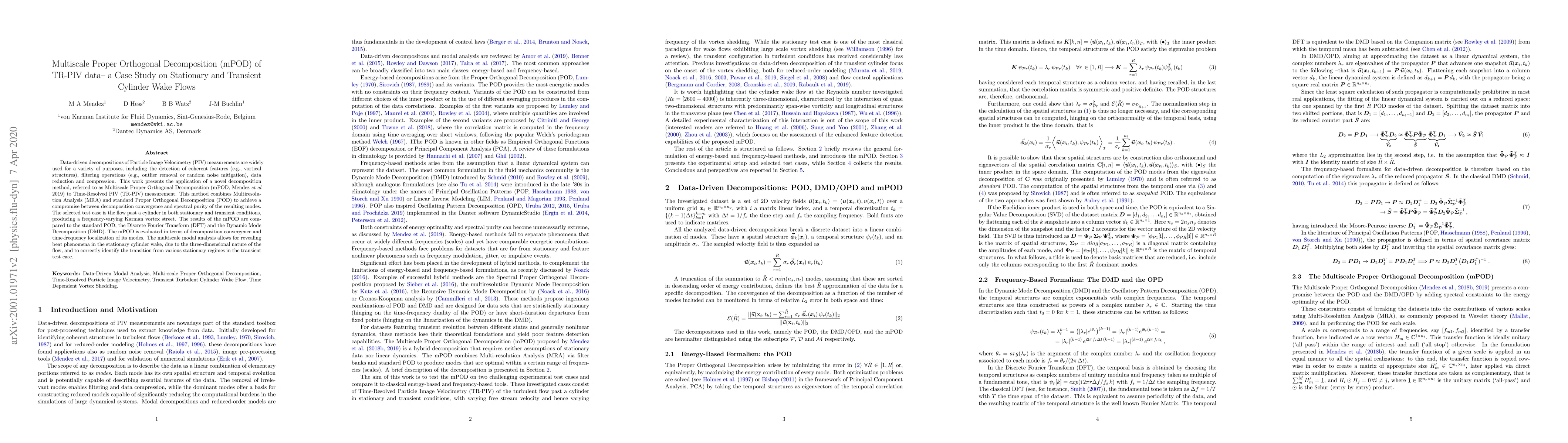 This paper applies Multiscale Proper Orthogonal Decomposition (mPOD) to Time-Resolved PIV data for analyzing cylinder wake flows, comparing it to standard POD, DFT, and DMD. The mPOD reveals beat phenomena and identifies transitions in flow regimes more effectively.
