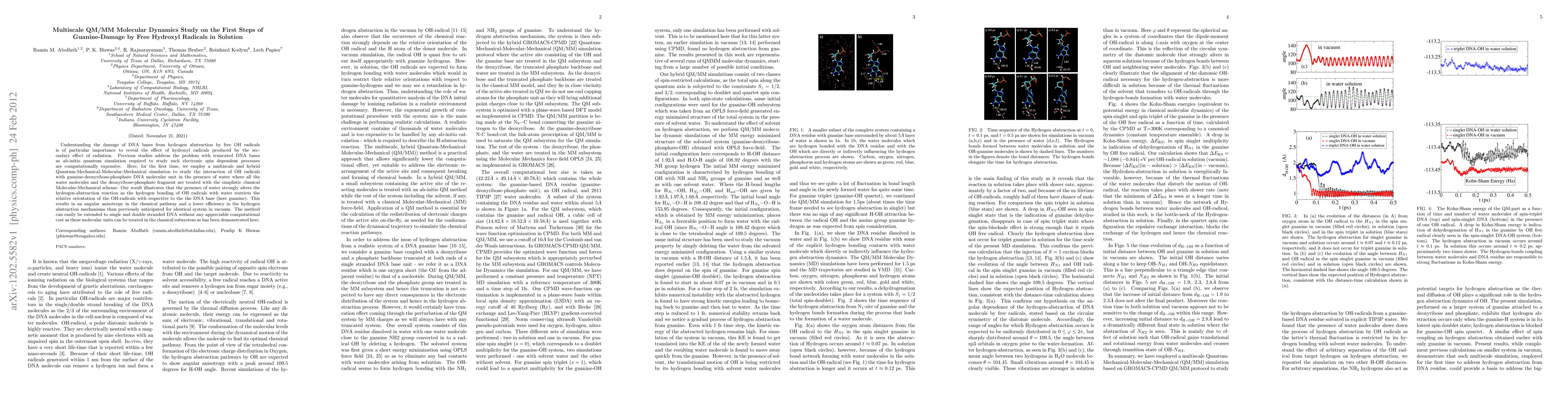 Understanding the damage of DNA bases from hydrogen abstraction by free OH radicals is of particular importance to reveal the effect of hydroxyl radicals produced by the secondary effect of radiation. Previous studies address the problem with truncated DNA bases as ab-initio quantum simulation required to study such electronic spin dependent processes are computationally expensive. Here, for the first time, we employ a multiscale and hybrid Quantum-Mechanical-Molecular-Mechanical simulation to study the interaction of OH radicals with guanine-deoxyribose-phosphate DNA molecular unit in the presence of water where all the water molecules and the deoxyribose-phosphate fragment are treated with the simplistic classical Molecular-Mechanical scheme. Our result illustrates that the presence of water strongly alters the hydrogen-abstraction reaction as the hydrogen bonding of OH radicals with water restricts the relative orientation of the OH-radicals with respective to the the DNA base (here guanine). This results in an angular anisotropy in the chemical pathway and a lower efficiency in the hydrogen abstraction mechanisms than previously anticipated for identical system in vacuum. The method can easily be extended to single and double stranded DNA without any appreciable computational cost as these molecular units can be treated in the classical subsystem as has been demonstrated here.