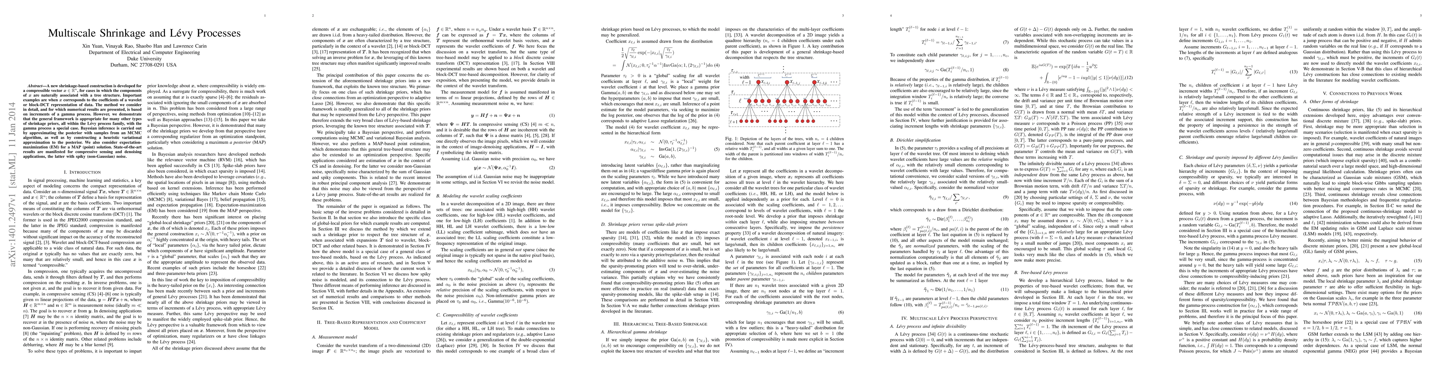 A new shrinkage-based construction is developed for a compressible vector $\boldsymbol{x}\in\mathbb{R}^n$, for cases in which the components of $\xv$ are naturally associated with a tree structure. Important examples are when $\xv$ corresponds to the coefficients of a wavelet or block-DCT representation of data. The method we consider in detail, and for which numerical results are presented, is based on increments of a gamma process. However, we demonstrate that the general framework is appropriate for many other types of shrinkage priors, all within the L\'{e}vy process family, with the gamma process a special case. Bayesian inference is carried out by approximating the posterior with samples from an MCMC algorithm, as well as by constructing a heuristic variational approximation to the posterior. We also consider expectation-maximization (EM) for a MAP (point) solution. State-of-the-art results are manifested for compressive sensing and denoising applications, the latter with spiky (non-Gaussian) noise.