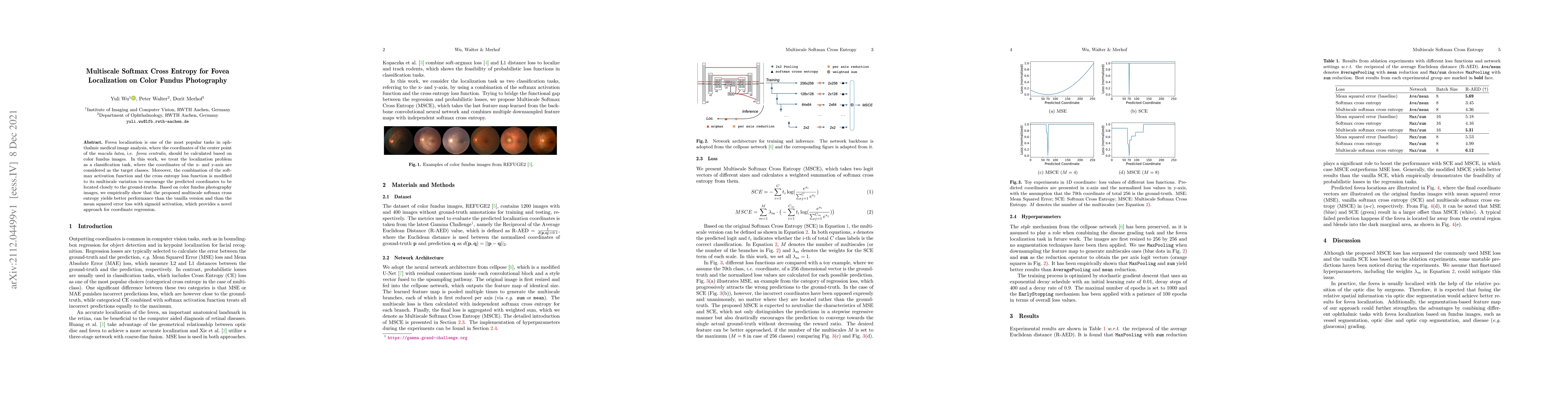 This paper proposes a multiscale softmax cross entropy method for fovea localization in color fundus images, treating it as a classification task. The approach improves upon traditional softmax cross entropy and mean squared error, demonstrating superior performance in accurately predicting the fovea's coordinates.