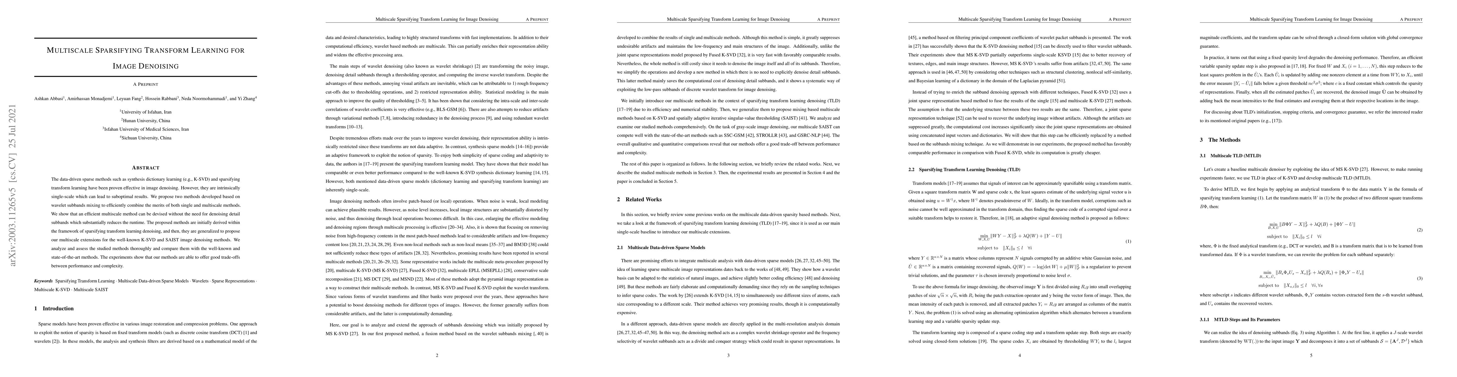 This paper proposes multiscale sparsifying transform learning methods for image denoising, combining the strengths of single-scale and multiscale approaches. The methods reduce runtime by avoiding the need to denoise detail subbands, and are shown to outperform state-of-the-art techniques in terms of performance and complexity.
