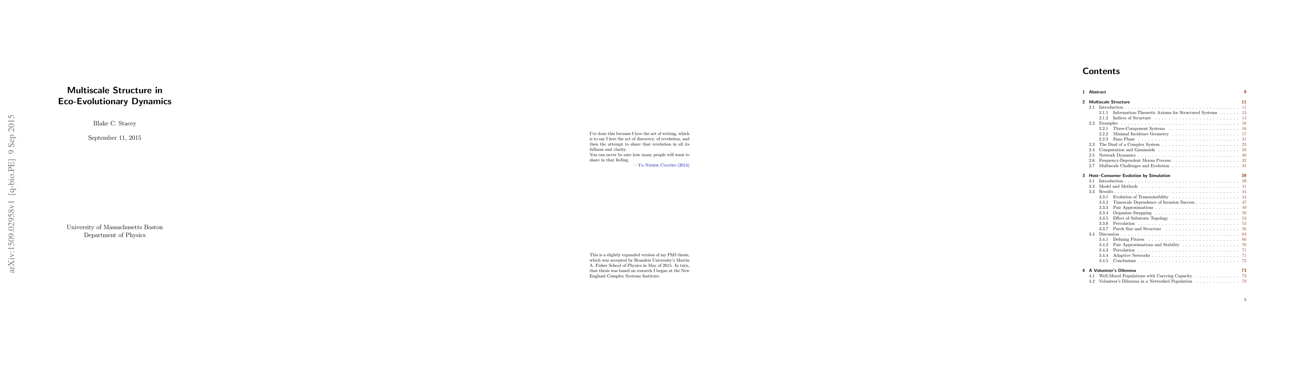 This paper develops a mathematical framework grounded in information theory to quantify multiscale structures in eco-evolutionary dynamics, demonstrating how complex interdependencies influence evolutionary processes through spatial models, evolutionary game theory, and replicator dynamics. It aims to clarify the various ways natural selection operates at multiple levels.