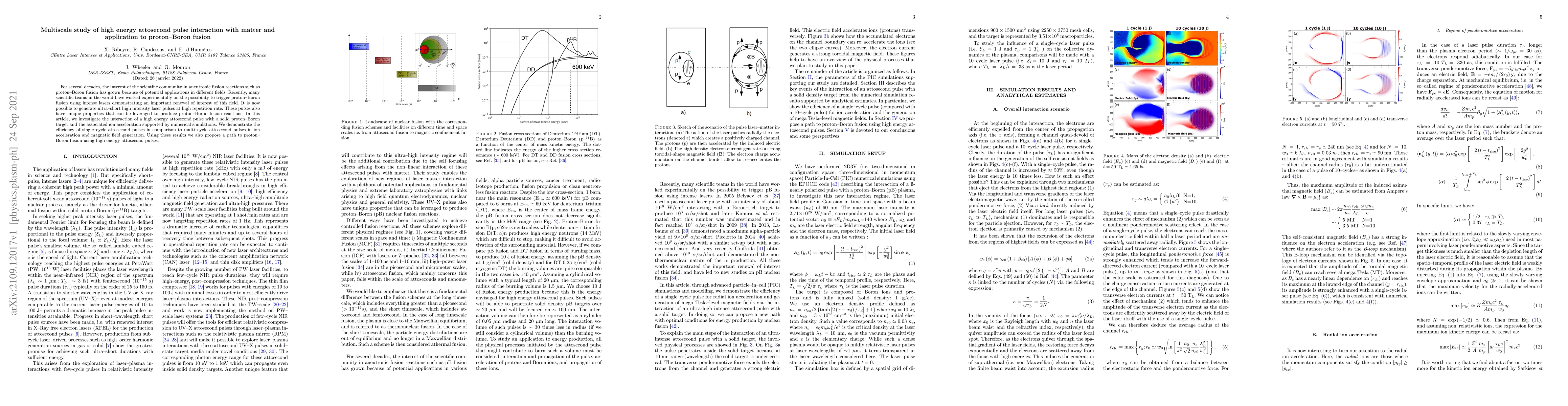 This paper investigates the interaction of high energy attosecond pulses with a solid proton-Boron target, demonstrating the efficiency of single-cycle pulses in ion acceleration and magnetic field generation compared to multi-cycle pulses. The study proposes a novel approach to achieving proton-Boron fusion using these ultra-short high intensity laser pulses.
