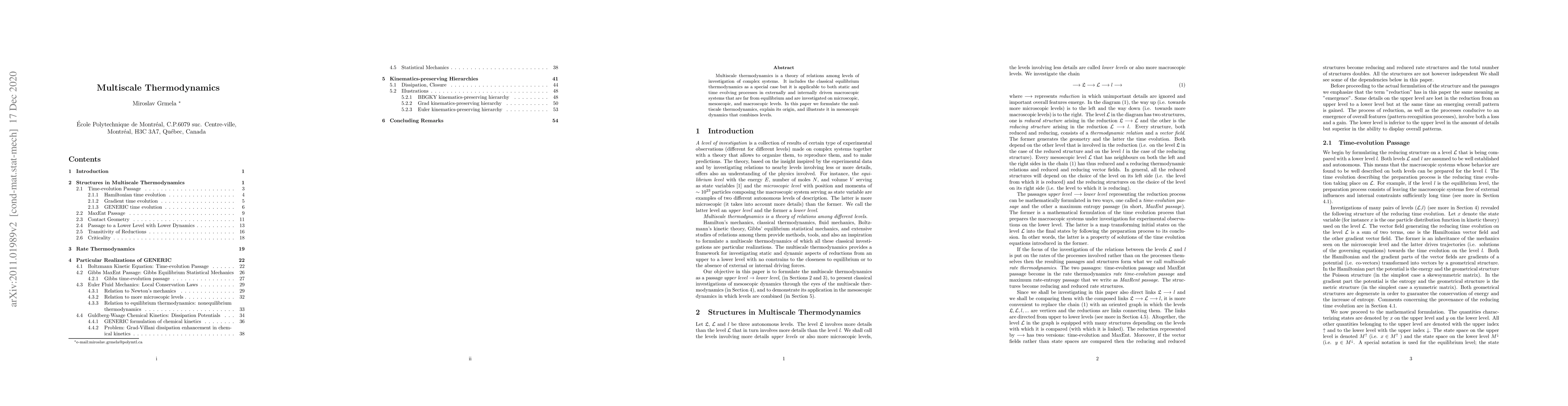 Multiscale thermodynamics connects microscopic, mesoscopic, and macroscopic levels of complex systems, applying to far-from-equilibrium processes in static and time-evolving systems.