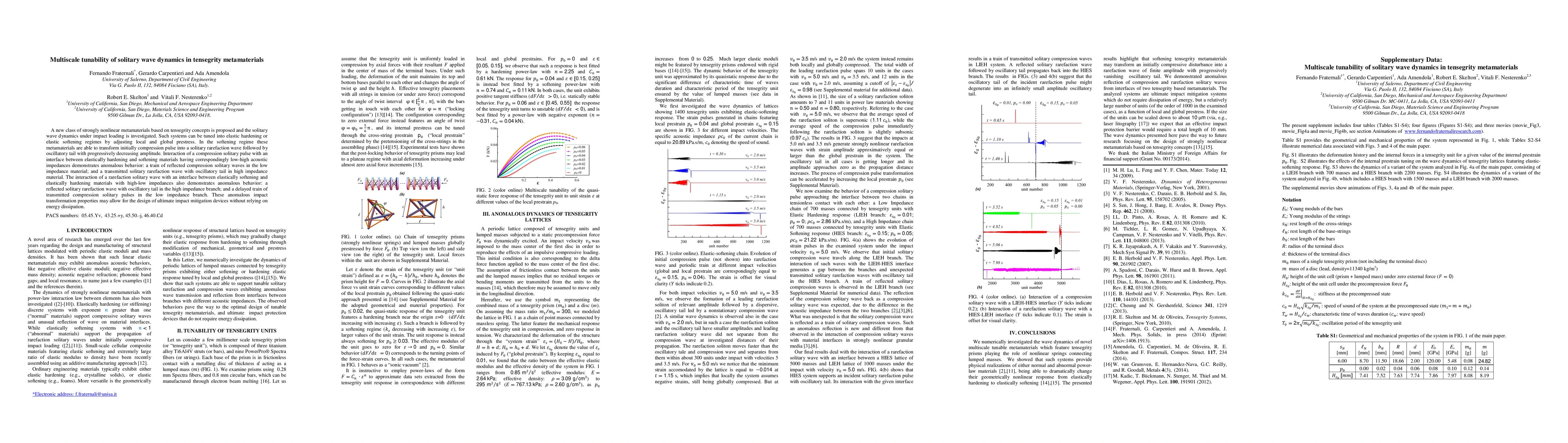 This paper proposes a novel class of tensegrity metamaterials that exhibit tunable solitary wave dynamics under impact loading, switching between elastic hardening and softening via prestress adjustments. The study reveals unique wave transformation behaviors at interfaces between these materials, suggesting potential for advanced impact mitigation technologies.